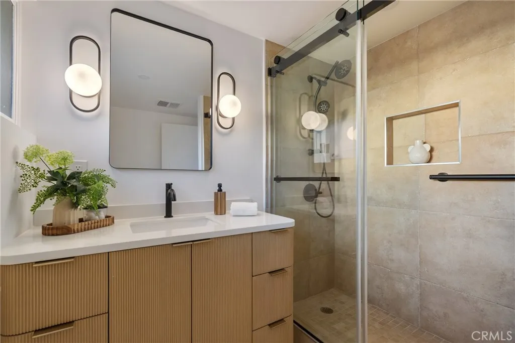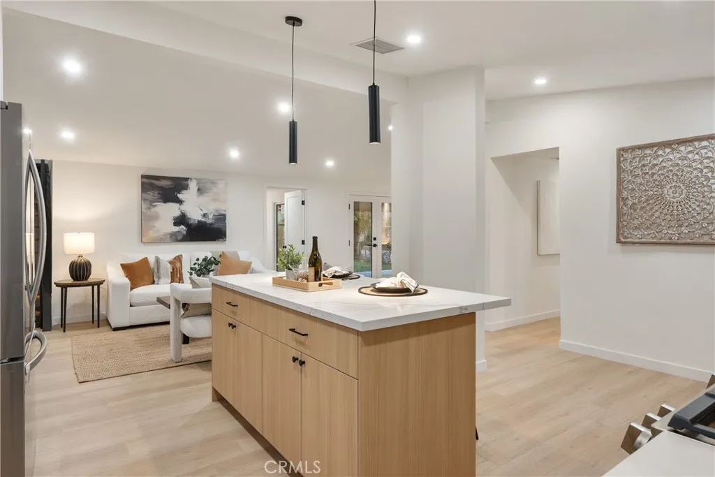Welcome to this beautifully remodeled 4 bedroom, 2 bathroom, two-story home located in the highly desirable city of Lakewood. Thoughtfully updated from top to bottom, this residence blends modern design with everyday functionality, offering a bright and stylish living experience. Step inside to an inviting open layout featuring a completely renovated kitchen equipped with quartz countertops, sleek European-style cabinetry, stainless steel appliances, and chic lighting. The spacious oversized master bedroom offers the perfect retreat, complete with his and hers closets and plenty of natural light. Both bathrooms have been tastefully upgraded with contemporary finishes. The dining room leads to the covered patio, ideal for relaxing or entertaining. Additional upgrades include an electric water heater, new electrical panel, and new interior/exterior finishes throughout. Situated near Cerritos and just minutes from the Los Cerritos Center, this home offers easy access to shopping, dining, parks, and the 605 freeway.