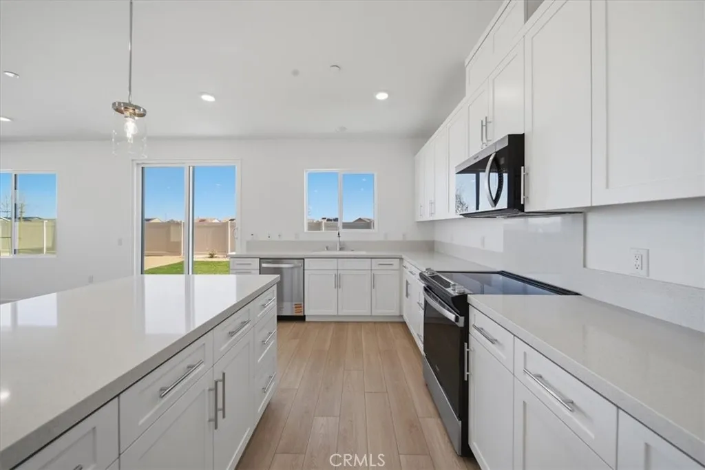 Welcome to this beautiful home located in the desirable Sonora community of Lancaster, CA. This spacious residence offers a thoughtful layout, modern upgrades, and plenty of natural light throughout. At the front of the home, you'll find a charming gable-style bedroom featuring mirrored closet doors. A nearby full bathroom includes a double-vanity, tub/shower combo, and upgraded finishes. An additional bedroom also features mirrored closet doors and ample storage. The home offers a private entry into the master suite, complete with its own walk-in shower and large walk-in closet, creating a comfortable retreat. Youll also enjoy convenient access to the laundry room and garage from this area of the home. The heart of the home is its large open-concept living space, showcasing a high backsplash, custom tile work, and premium Whirlpool appliances, including a Whirlpool refrigerator and electric stove. A walk-in pantry and upgraded pendant lighting add both style and function. The kitchen window overlooks your grassy backyard, with a nice side yard perfect for outdoor living. With modern upgrades, great storage, and a welcoming layout, this home blends comfort and style in one of Lancasters most sought-after neighborhoods. Schedule your private tour today!