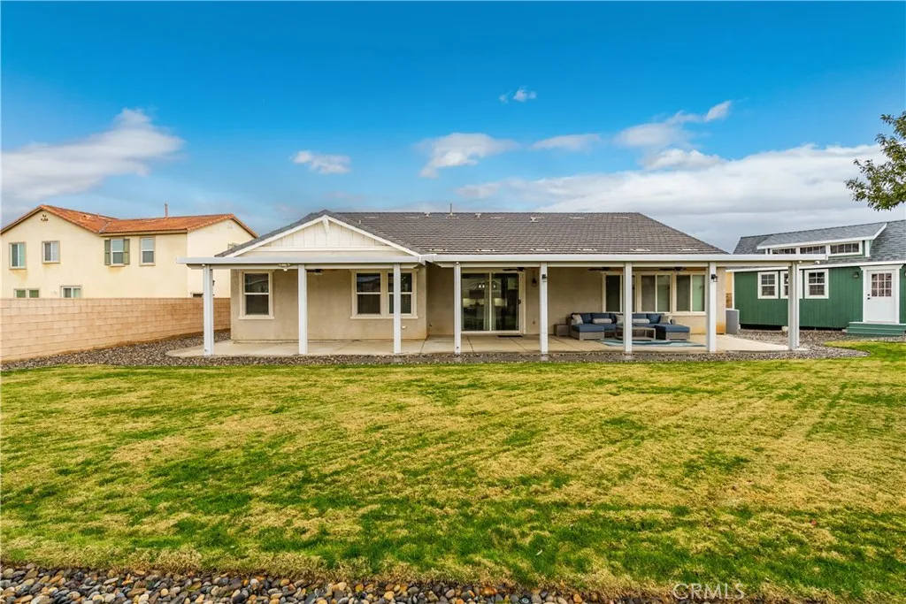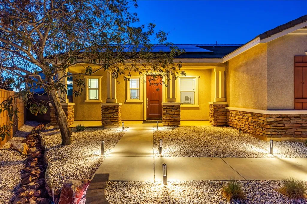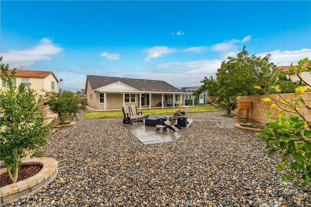***LIVE BEAUTIFULLY*** Discover the epitome of luxurious single-story living at 42715 Raywood Drive, where this stunning 4-bedroom home spans nearly 3,000 square feet and boasts over $300,000 in premium upgrades, all without the burden of HOA fees or Mello-Roos taxes. Step inside to a fully remodeled kitchen, laundry, and pantry that redefine functionality and style, featuring an enormous island with custom cabinetry, sleek leathered granite countertops throughout, and coordinated black stainless-steel appliances from the Samsung Bespoke series, offering superior efficiency compared to neighboring layouts. The secondary bathroom has been elegantly transformed with high-end black Moen Voss finishes and a relaxing soaking tub enclosed by glass panel doors, while storage solutions abound with a complete overhaul of the primary bedrooms walk-in closet using built-ins, reconfigurable Elfa systems in the other three bedrooms and linen closet, expanded attic access for additional space, and a convenient hanging storage rack in the garage. Enhancing everyday convenience, the home is equipped with smart features controlling interior lights and switches, the thermostat, front and garage door locks, blinds, irrigation system, landscape lighting, Ring doorbell, and patio camera. Outside, the massive backyard invites endless enjoyment on a fully landscaped oasis, complete with a beautiful 1,200-square-foot lawn, coordinated hardscaping for garden areas and tree sconces, an automated smart irrigation system covering both front and back, thriving fruit trees including lemon, lime, pomegra