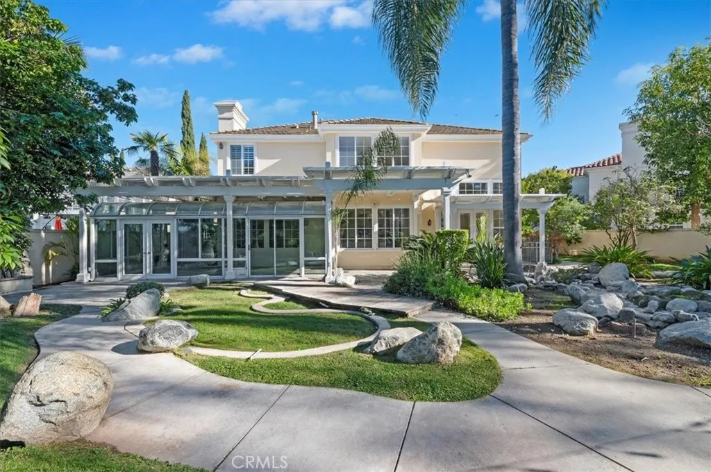 Experience the best of California living blended with timeless Traditional style in the prestigious Turtle Rock gated community of South Irvine. This exquisite two-story luxury residence offers 3,254 sq/ft of refined living space and is ideally situated in quiet cul-de-sac.. From the moment you step through the front doors, you're welcomed to a dramatic entry with soaring ceilings, a sweeping staircase, and expansive windows that flood the home with natural light.. The main level features a formal living room, formal dining room, generous famiy room , en-suite bedroom with full bath -perfect for guests or multigenerational living. The contemporary is beautifully designed kitchen with high end stainless steel appliances, 48" built-in refrigerator, large granite island and and a charming breakfast nook for everyday convenience. As a bonus, the home includes an expansive glass enclosed sunroom with flagstone flooring, providing versatile space ideal for large gatherings. Upstairs you'll find four spacious bedrooms and three full baths. The spa-inspired primary suite offers a luxurious walk-in shower, Roman soaking tub, and large professionally designed walk-in closet, outfitted with custom built-ins and mirrored doors every detail thoughtfully curated for effortless living. This exceptional estate has fresh interior paint and carpet, plantation shutters,French doors, two fireplaces, and polished travertine throughout downstairs. Park-like rear yard is a private oasis with a gorgeous pond and waterfall, numerous fruit trees, lattice patio cover, and coveted southwest exposure f