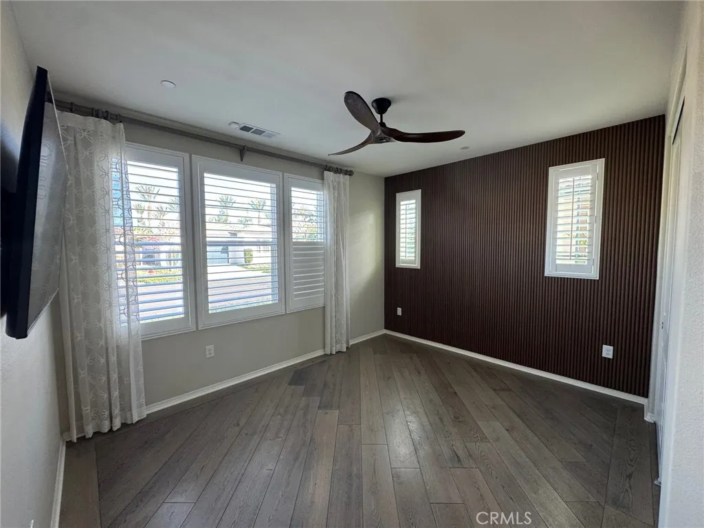 Solar is paid off!! Free Solar! REMODELED Spanish Masterpiece in Esperanza Ontarios Premier 55+ Community Welcome to this stunning former model home in Esperanza, an exclusive gated community designed for active adults 55+. Residents enjoy resort-style living at the 9,000 sq ft La Jolla Club featuring a sparkling pool, spa, state-of-the-art fitness center, indoor/outdoor kitchens, and pickleball and bocce ball courts. Additional amenities include a dog park and community garden. Recent Upgrades by prior owner (2024): Exterior Enhancements: Fresh exterior paint and new gutters Upgraded lighting throughout Professionally designed low-maintenance landscaping with new drip irrigation system Landscape lighting and outdoor ceiling fans Strategic drainage solutions Drought-tolerant plantings Premium artificial turf side yard perfect for pets Interior Improvements: Beautiful engineered hardwood flooring throughout Custom Spanish tile dual shower in primary bath with dual showerheads and handheld fixtures Plantation shutters on all windows Custom wood ceiling fans throughout Soft-close rollout trays in cabinetry for maximum storage Custom wood accent wall in second bedroom/office Versatile office/closet space with original fixtures available Additional Features: Owned solar panels no lease! Tankless water heater with recirculating pump Overhead tote storage system in garage Prime Location: Ideally situated within the community with convenient access to shopping and amenities. This meticulously maintained home combines Spanish elegance with modern convenience tru