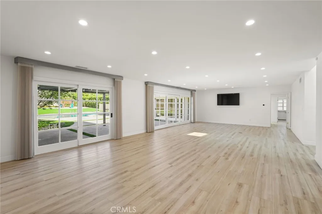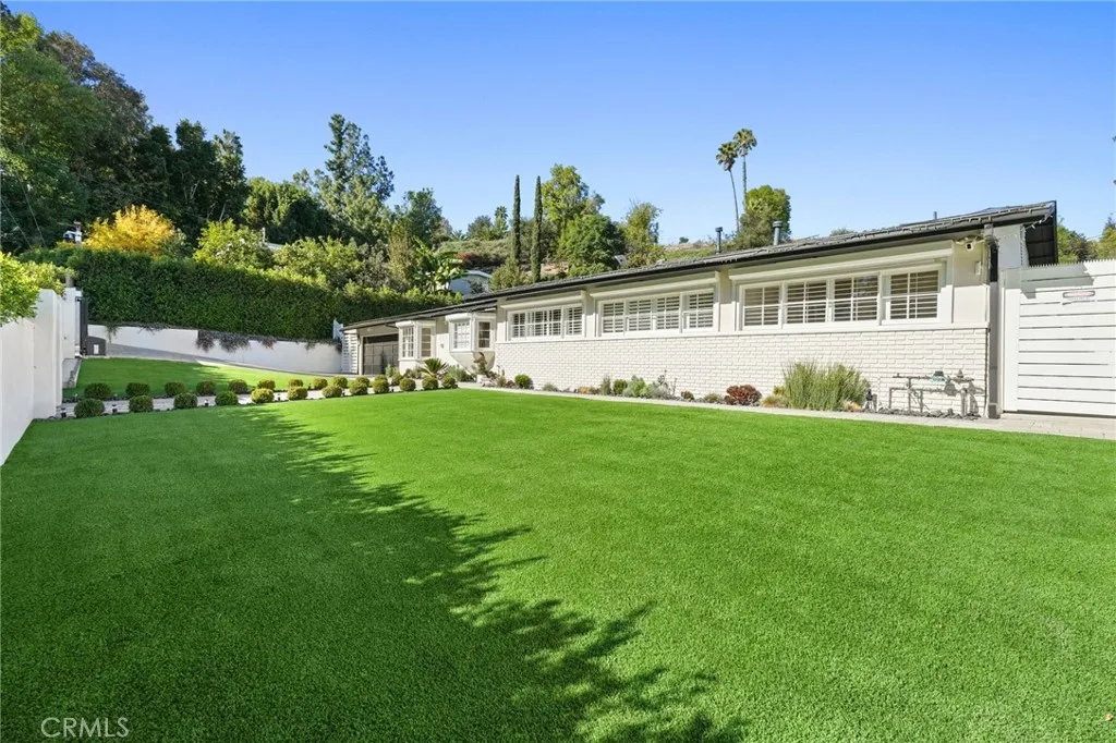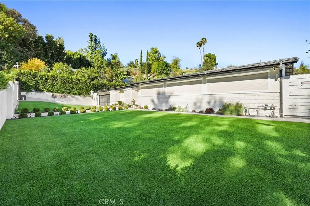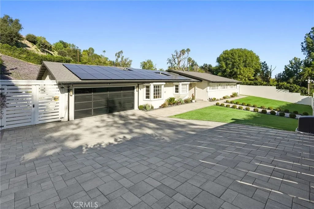 Situated South of the Boulevard in Woodland Hills, this exceptional gated, single-story, remodeled estate offers luxury, privacy, and smart-home living on an expansive 25,000 sq ft lot with a large, private front yard. Spanning approximately 3,700 sq ft, the home features 3 bedrooms PLUS an office and 4 bathrooms with an ideal floor plan. The residence is truly turn-key with extensive recent upgrades including a new roof, new HVAC, new flooring, fresh interior and exterior paint, updated electrical panel, and new lighting throughout. The home offers an open-concept living room and dining room, as well as a large family room, all featuring sliding glass doors that open directly to the expansive, park-like backyard, creating seamless indoor-outdoor living. The home also offers abundant storage throughout, adding to its exceptional functionality. The oversized primary suite includes two large walk-in closets with steel doors and a luxurious en-suite bath. The spacious kitchen features abundant cabinetry, generous counter space, and a breakfast nook. Outdoor amenities include a brand-new pool and heated spa, controllable via phone app, along with a sandy play area ideal for recreation. Both the front and rear yards feature turf for water conservation. Additional highlights include full perimeter walls and fencing, mature Ficus hedging, high-end security cameras, alarm system, blackout security shutters, smart gates and garage, 40 solar panels with Tesla backup battery, and two 240V EV chargers. A rare lease opportunity in one of Woodland Hills most desirable neighborhoods.