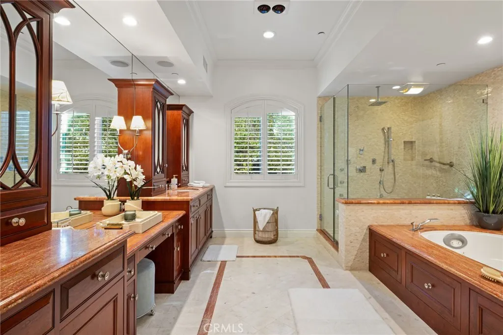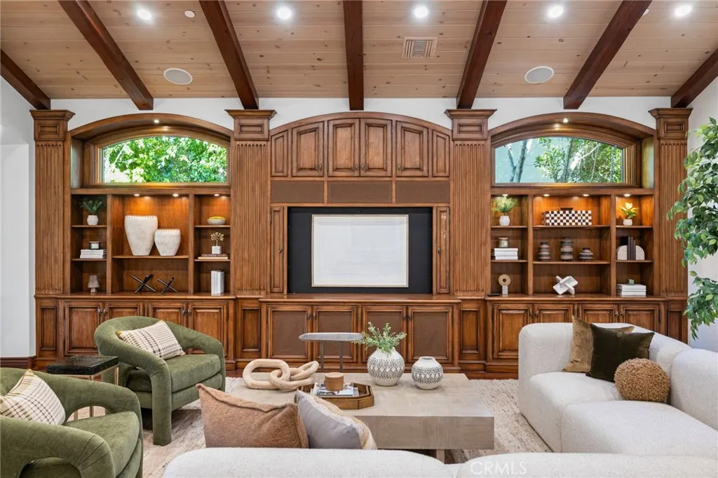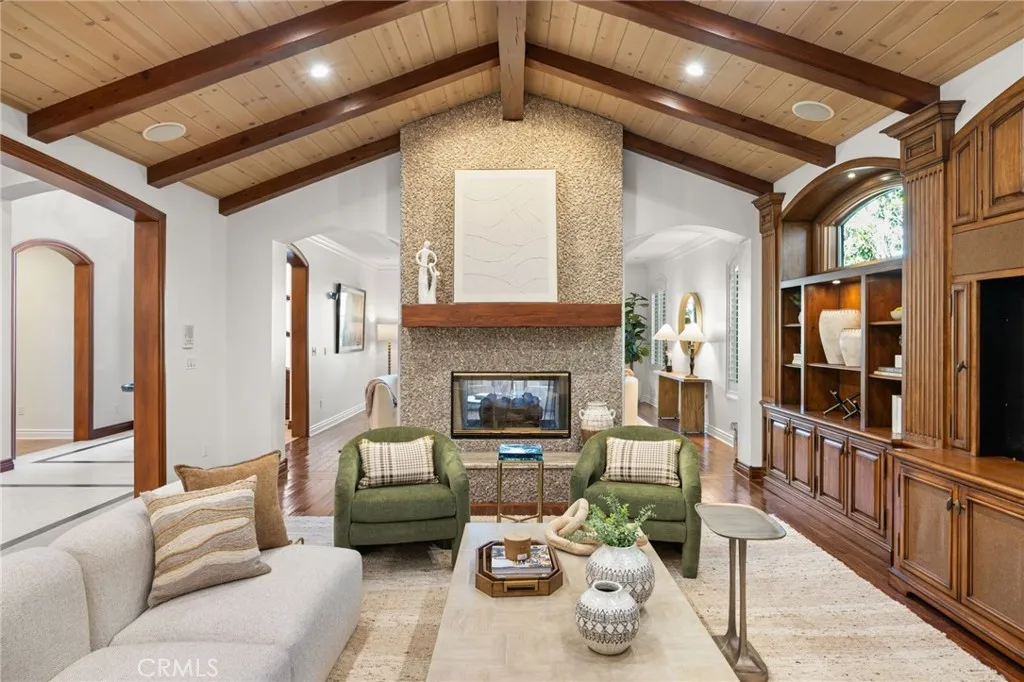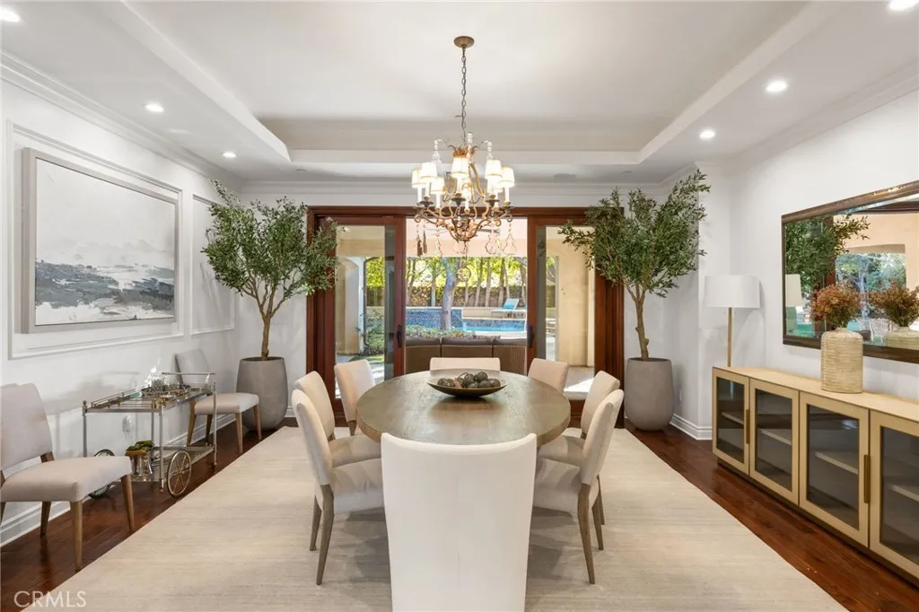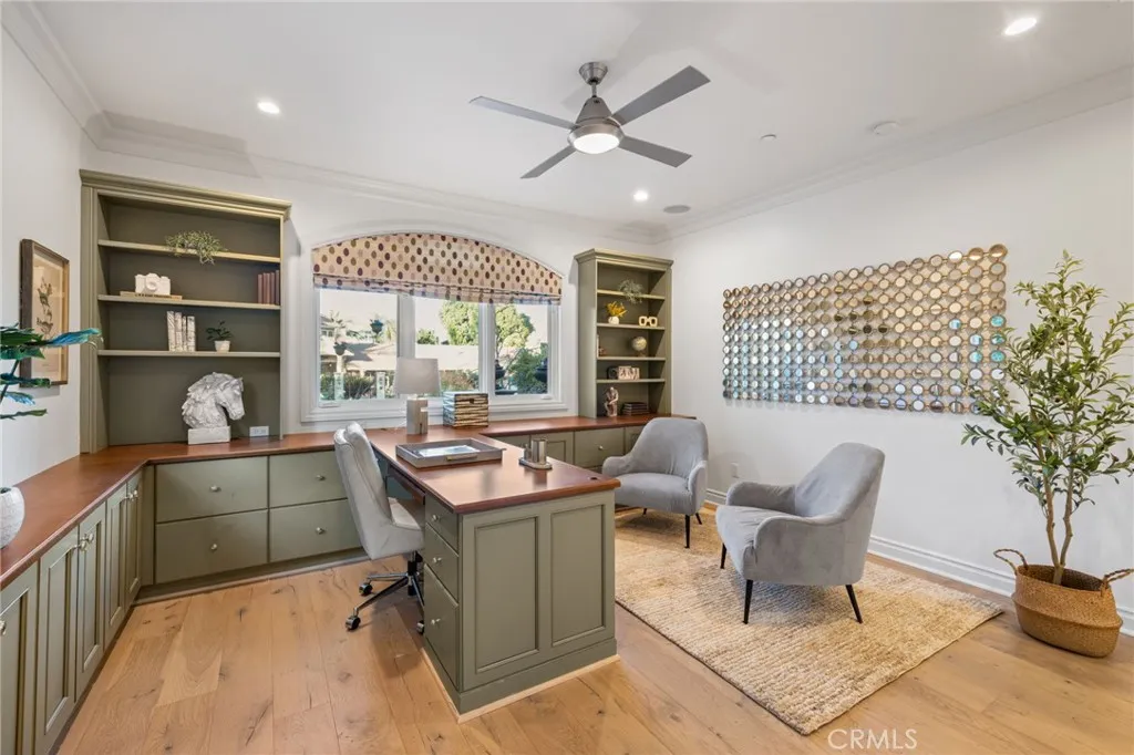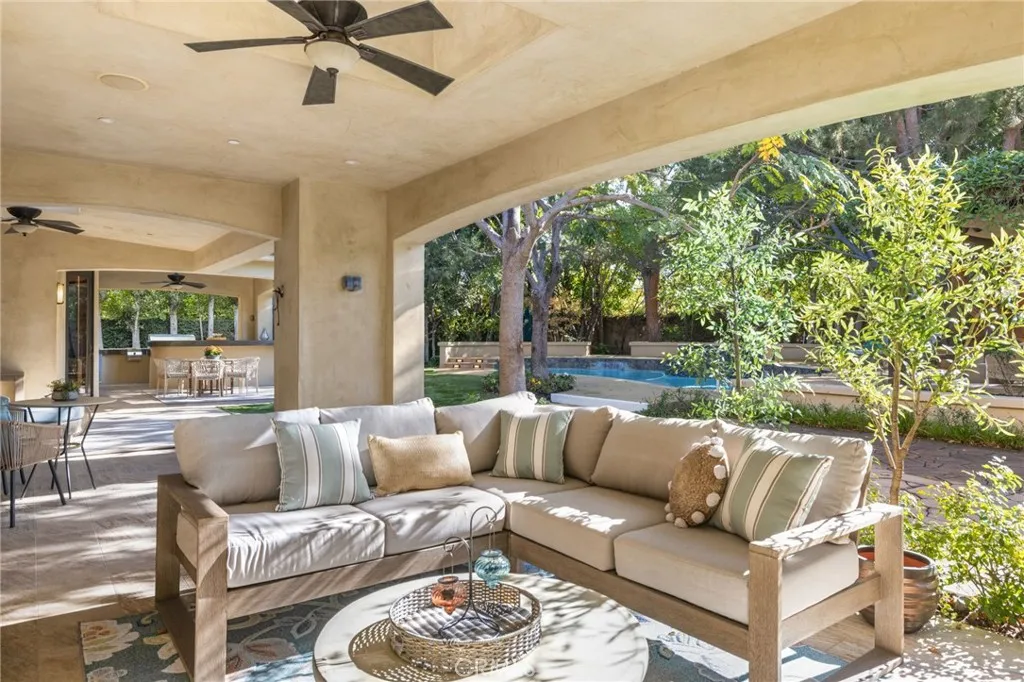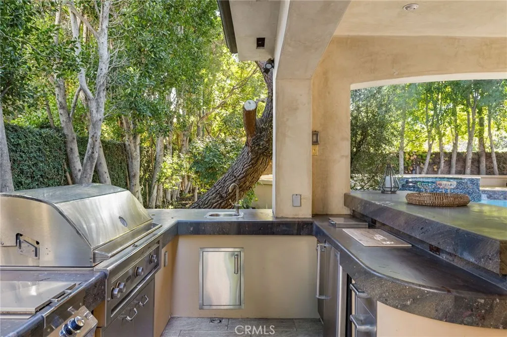 Experienceanelevateddesign in thissingle-storyhome,fully custom built, and constructed in 2010.Soaring ceilings, flowing floor plan, refined architectural elements, andprofessional designer selected finishesare tucked behind the stunning double door entrance of this timeless elegant estate. The expansive primary suite serves as a private retreat, featuring a spa-inspired bath and dual walk-in closets that create a separate wing of the home. All secondary bedroomsincluding a dedicated office with built-insoffer ensuite baths with custom designer vanities, walk in closets, and custom windows. At the heart of the home, the gourmet chefs kitchen impresses with a generous center island, abundant workspace, premium Wolf and Miele appliances, and seamless indoor-outdoor flow to the resort-style backyard. Outdoors, enjoy beautifully curated grounds with a sparkling pool, BBQ area, and multiple spaces for entertaining or relaxing, all set behind a gatedtree-lineddrivewayleading to aprivate rear yardsurrounded by beautiful trees and greenery. Additional highlightsfound only in the most high styles homesinclude a beautifully curated entrancewith dramatic chandelier, crown moldings highlighting tray ceilings with cove lighting,a mostspacious pantry, custom storage solutions, and exceptional craftsmanship throughout. Thewell appointedlot also offers the possibilityto explore an additional detached living space or ADU. This is a rare opportunity to own a residence wherewarm elegance,luxury, comfort, and impeccable care come together effortlessly.
