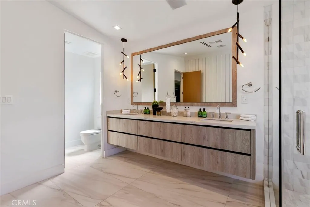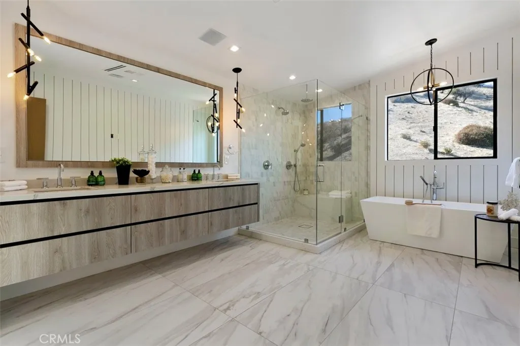 Stunning modern farmhouse, fully rebuilt in 2018, located south of the Boulevard on one of Encinos most private and sought-after streets. This exceptional residence offers approximately 5,400 square feet of thoughtfully designed living space, featuring 6 bedrooms, 5.5 bathrooms, a library, private theater, and a fully equipped outdoor kitchen. Upon entry, soaring 20-foot ceilings create a dramatic sense of scale and openness. The main level showcases a seamless open-concept layout, where the kitchen, dining area, and family room flow effortlesslyideal for both everyday living and entertaining. Two bedrooms are conveniently located on the main floor, with four additional bedrooms upstairs, all generously sized and en suite. The expansive primary suite is a true retreat, offering breathtaking views, dual oversized walk-in closets, and a beautifully appointed spa-like bathroom. The resort-style backyard features a large swimmers pool, spa, and outdoor kitchen, all set against panoramic city light and sweeping valley views. This home delivers privacy, scale, views, and modern comfortan exceptional opportunity in one of Encinos premier locations.