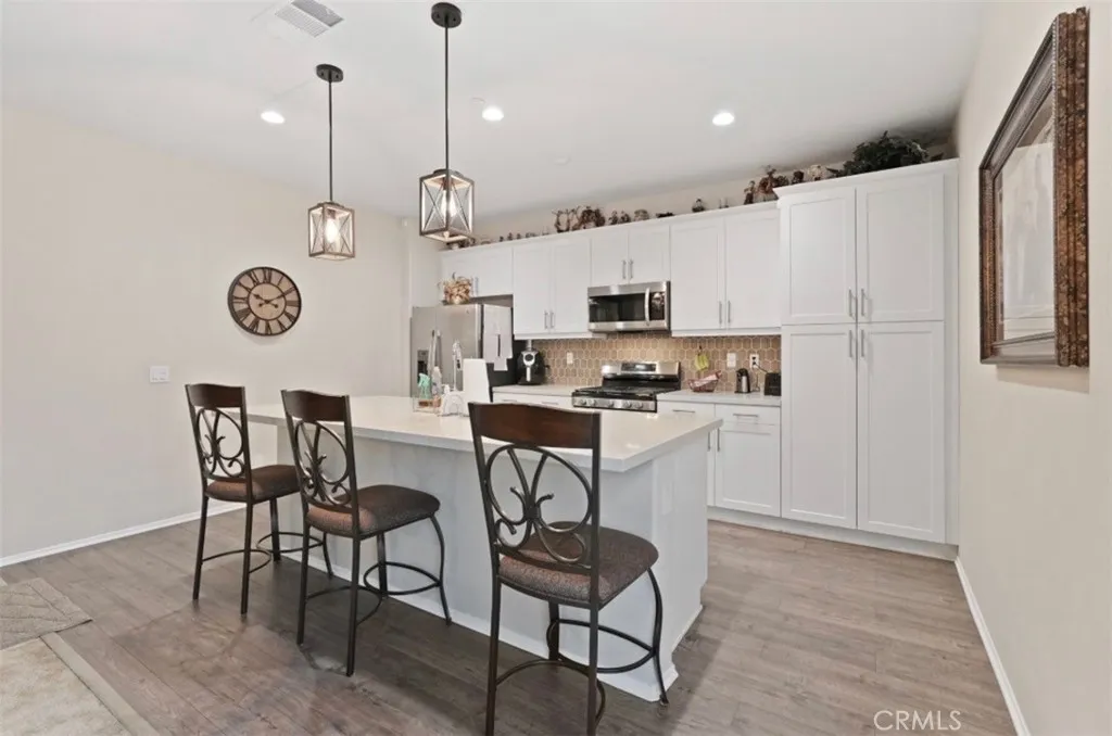 Welcome to this beautifully maintained three-bedroom, two-and-a-half bath home, built in 2022, and located in a desirable gated community in Perris. The open-concept kitchen features white cabinetry, quartz countertops, and stainless-steel appliances, seamlessly flowing into the main living areaperfect for everyday living and entertaining. The spacious primary suite offers a relaxing retreat with a walk-in shower and dual sinks. Additional highlights include an indoor laundry room, attached garage, and owned/leased solar for energy efficiency. Residents enjoy resort-style community amenities, including a pool and spa, park, clubhouse, and outdoor cooking and barbecue areas. This newer home offers comfort, convenience, and a wonderful community lifestyledont miss this opportunity!