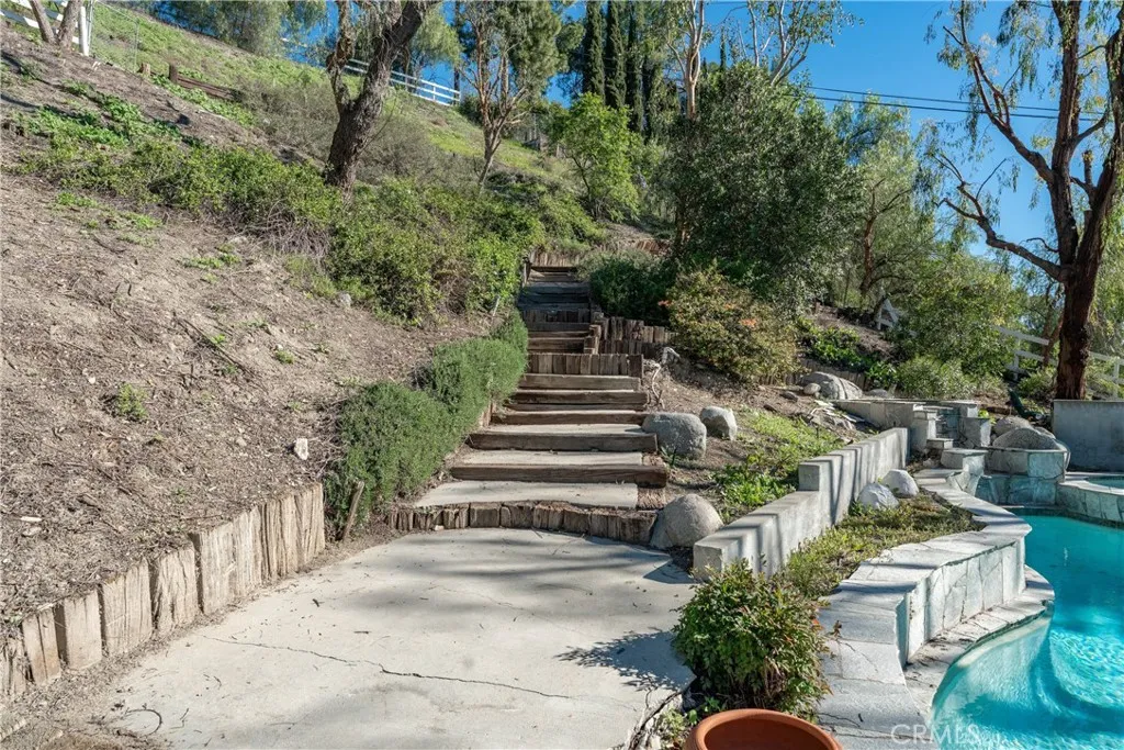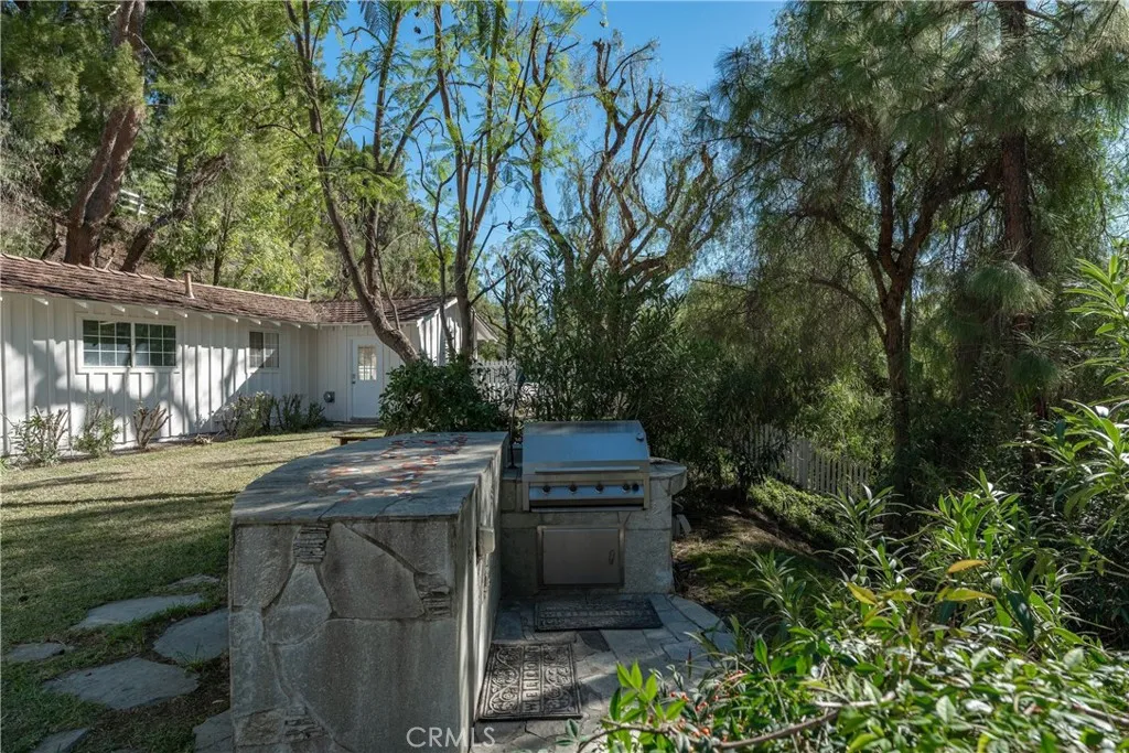 Nestled within the prestigious, guard-gated community of Hidden Hills, this inviting Ranch-Style residence offers the perfect blend of comfort and elegance. The main home features three bedrooms, four bathrooms, a beautifully appointed office with a custom-built desk, offering an ideal workspace or optional guest suite. This room includes a private ensuite bath, blending functionality and comfort. Additionally, you will enjoy the convenience of a separate pool house/guest studio complete with its own bath. Step into the serene Primary Suite, where French doors open to the outdoors, and a luxurious spa-inspired bathroom awaitsfeaturing a lavish soaking tub, oversized shower, and a double sink vanity with exquisite stone countertops. Down the hall, youll find additional bedrooms connected by a beautifully renovated Hollywood bathroom, showcasing dual sinks, subway tiles, and a stunning glass-enclosed shower. Nearby, the convenient laundry room comes equipped with a newer washer and dryer. The chefs kitchen is a showstopper, boasting granite countertops, antique white cabinetry, stainless steel appliances, and an expansive walk-in pantry. Adjacent to the kitchen are a formal living room with a cozy fireplace, a spacious dining area, and a grand Great Roomideal for entertaining or relaxing with loved ones. Step outside to your private entertainers paradise, where a sparkling pool and spa are surrounded by lush landscaping, creating a tranquil sanctuary beneath the trees. The adjoining pool/guest house studio offers a 3/4 bath, making it the perfect retreat for guests or an inv