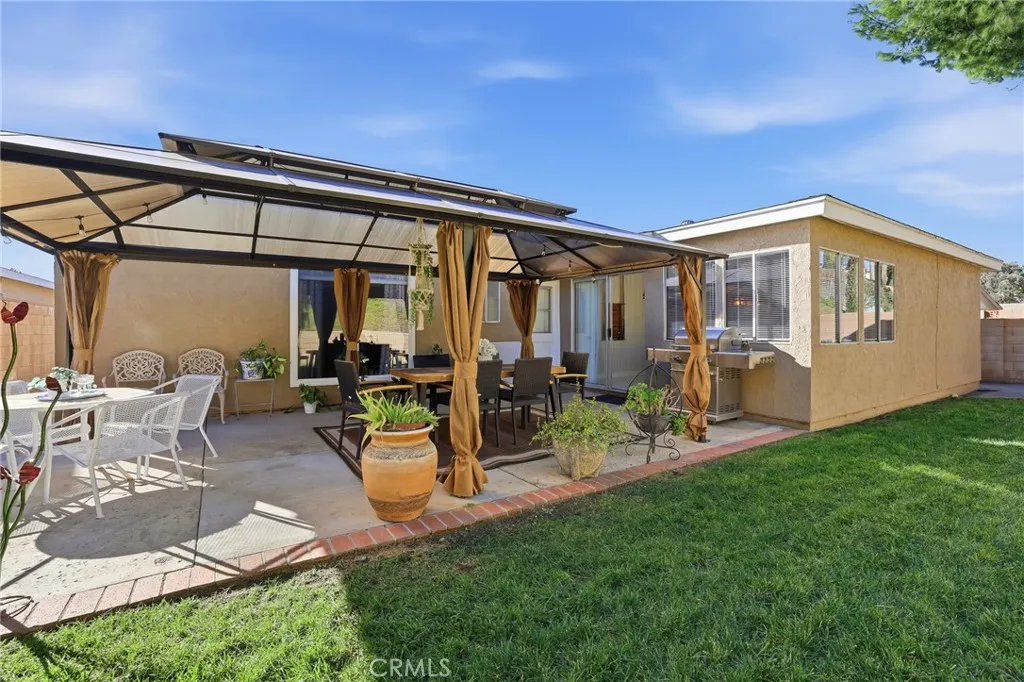 Theres something grounding about a home that feels immediately familiar, the kind of place where the morning light hits just right. This Canyon Country single-story residence offers comfort, warmth, and understated living. A well-maintained, expansive front yard welcomes you home. Set on a quiet cul-de-sac, the large driveway and refreshed exterior set the tone before you step inside to find an abundance of natural light and open, airy spaces. At the heart of the home, the thoughtfully refreshed kitchen features updated cabinetry, modern hardware, and clean countertops designed for everyday rituals from morning coffee to evening meals. A brick-style backsplash adds a touch of shabby-chic charm, while features like a Lazy Susan and display cabinetry blend style with practicality, creating a true gathering space. Neutral paint tones, high ceilings, and an expanded flex room- ideal for a home office, playroom, or man cave- offer versatility to suit your lifestyle. The bathrooms continue this calm, composed feel with updated vanities, refined finishes, upgraded fixtures, clean tilework, and a soft, spa-like palette. Natural light flows effortlessly throughout the intuitive layout. In the family room, a classic masonry brick fireplace with a wood-burning insert and cast-iron stove becomes the focal point, blending timeless character with cozy functionality. Outside, the expansive backyard feels like a private retreat, complete with lush landscaping, a charming gazebo, and wrought-iron gates. Whether gardening, hosting alfresco dinners, or unwinding in the evening, the space feel