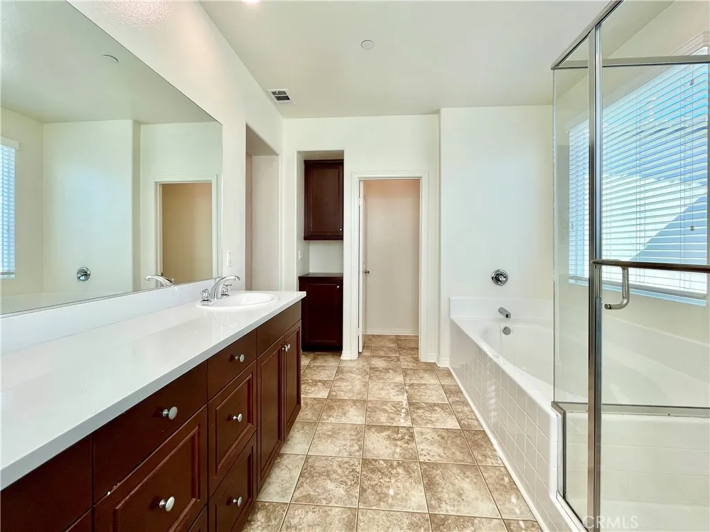 Freshly painted throughout with brand-new luxury vinyl plank flooring, this elegant detached residence is located in Valencias highly sought-after West Creek community, offering exceptional privacy and refined living. The thoughtfully designed interior features a chef-inspired kitchen with stainless steel appliances, granite countertops, rich cabinetry, and an oversized island, flowing seamlessly into the dining area and light-filled living room. Large windows and a glass door open to a private patio, creating an inviting indoor-outdoor lifestyle. A powder room completes the main level. Upstairs, the serene primary suite boasts high ceilings, dual walk-in closets, and a spa-like ensuite bath with dual vanities, soaking tub, and separate shower. Two additional bedrooms share a Jack-and-Jill bathroom, complemented by a convenient upstairs laundry room. Additional highlights include a private patio and a two-car garage with direct access. Enjoy West Creeks resort-style amenities including a sparkling pool and spa, top-rated schools, scenic paseos, and easy access to shopping, dining, and freeways.