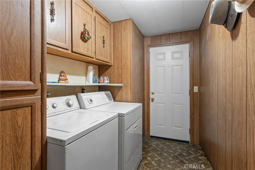 Beautiful double-wide home conveniently located just three units from the association clubhouse. This spacious Fleetwood model offers 1,344 sq. ft. of living space plus a covered porch/patio and a carport that accommodates 23 vehicles. Inside, youll find a large living room, a formal dining area with a built-in hutch, and central air conditioning for year-round comfort. The updated kitchen features newer appliances, a cozy breakfast nook, and opens to a separate family room with a sliding glass door leading to the patio perfect for relaxing or entertaining. A dedicated laundry room with washer and dryer included adds extra convenience. The primary bedroom offers both a walk-in closet and an additional separate closet, along with an en-suite bathroom featuring dual sinks. The guest bedroom is located near a full hallway bathroom, ideal for visitors. Enjoy a low-maintenance yard with a storage shed included.Located in a 55+ senior community close to shopping, Sams Club, and transportation. Water is included in the monthly fees.