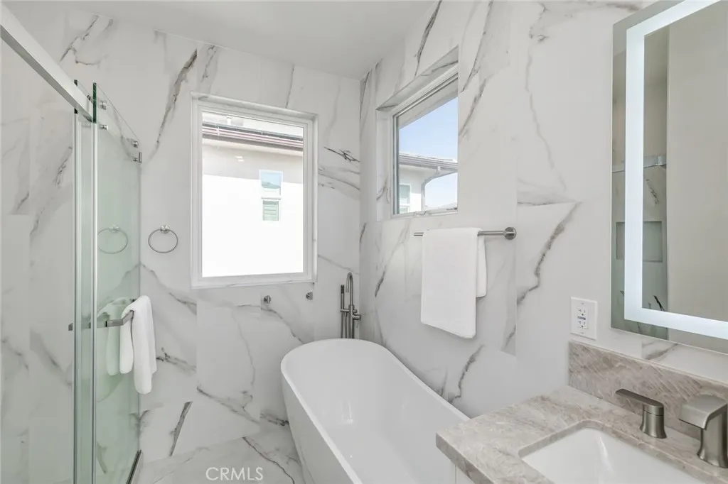 5 BED + 2 Main Master Room (down and up)+ LOFT | GUARD-GATED ALTAIR Stunning two-story home in the prestigious 24-hour guard-gated Altair community. Features 4 bedrooms, 4.5 baths, a spacious loft, and 2 Main Mater Room ideal for a home office and loft . The gourmet kitchen boasts a large island, built-in refrigerator, 6-burner cooktop, and ample cabinets, opening to the dining and living areas for seamless entertaining. First-floor bedroom with en-suite bath is perfect for guests. Upstairs includes a loft, laundry room, two secondary bedrooms, and a luxurious primary suite with dual walk-in closets, soaking tub, and separate shower. Designer upgrades include hardwood floors, crown molding, and plantation shutters. Professionally landscaped backyard provides a private space for outdoor gatherings. Altair offers resort-style amenities including pools, spas, parks, clubhouses, tennis courts, and playgrounds. Conveniently located near Great Park, Woodbury, Irvine Spectrum, shopping, dining, John Wayne Airport, and award-winning Irvine schools.