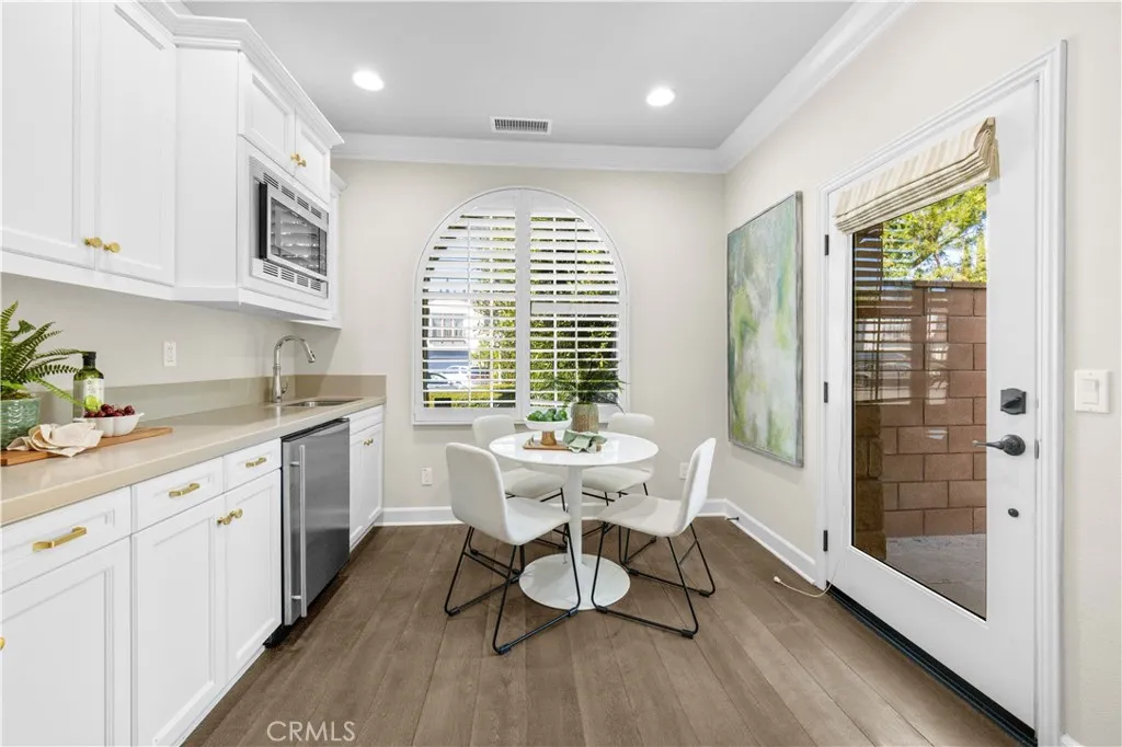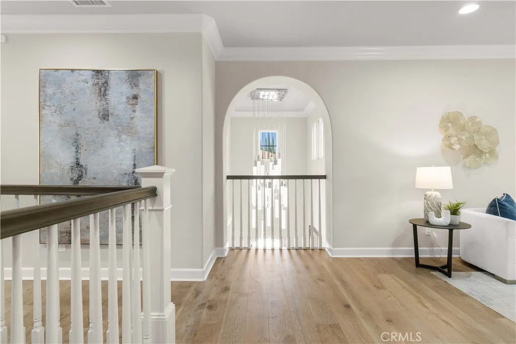 Tucked away at the end of a quiet cul-de-sac in the highly sought-after Woodbury community, this exceptional home offers a combination of privacy, space, and resort-style living on a rare nearly 9,000-square-foot lot. From the moment you enter, the home makes a striking impressiona grand two-story foyer highlighted by a crystal chandelier and refined wood accents, setting a tone of understated luxury and timeless elegance. Thoughtfully designed for multi-generational living, the home features five bedrooms, including three private suites. The ground-floor suite serves as a private retreat with its own bathroom, walk-in closet, kitchenette, and a separate entrance opening to a charming stone-paved side yard, offering exceptional flexibility. At the heart of the home, light-filled living and dining spaces unfold seamlessly. The living room features an elegant coffered ceiling and large picture windows overlooking the backyard, filling the space with natural light. The chef-caliber kitchen is anchored by a substantial granite island, complemented by quartz countertops, a full marble backsplash, and built-in high-end stainless steel appliances. Fully retractable bi-fold glass doors open to a beautifully designed courtyard with a built-in outdoor kitchen, creating seamless indoor-outdoor living. Every detail has been thoughtfully considered, from the discreet mini office and walk-in pantry near the garage entry to the custom garage cabinetry, integrated workbench, and dedicated shoe storageenhancing both function and organization. Upstairs, a versatile loft with custom media cab