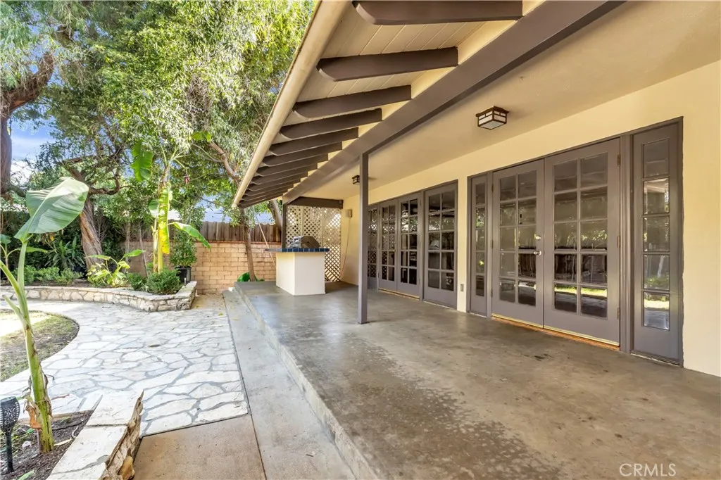 Experience a wonderful opportunity to lease a spacious 4 bedroom, 2 bathroom home situated on a gated corner lot in prime Encino. Offering nearly 2,200 square feet of refined living space, this property also includes a separate guest suite (approx. 700 sqft. with an additional 1 bedroom + 1 bathroom) above the garage, which could be perfect for a home office, studio, or extended family. A formal entry opens to a light and bright living area featuring rich hardwood floors, recessed lighting, and a stone fireplace with custom built-ins. Elegant French doors lead to the expansive grounds on nearly a 9,700 sqft. lot, creating a seamless indoor-outdoor flow. The adjacent sun-drenched kitchen is a chefs dream, equipped with a professional Viking stove, premium stainless steel appliances, a large walk-in pantry, breakfast nook and a picturesque window overlooking the pool. The sumptuous primary suite is a sanctuary of natural light, featuring a built-in flatscreen, a private entrance, and a generous walk-in closet. The ensuite primary bathroom offers dual sinks, ample storage, a separate tub and a shower stall with classic retro-style glass blocks. Three additional bedrooms provide versatility, including one off the living room that is ideal for a den or office. The tranquil backyard is a true private retreat, featuring a gated pool, a built-in BBQ area, an enclosed patio, and an above-ground hot tub. Mature trees and water fountain create a peaceful atmosphere. Above the detached three-car garage, discover a separate living area with its own bedrooms, bathroom, and a balcony over