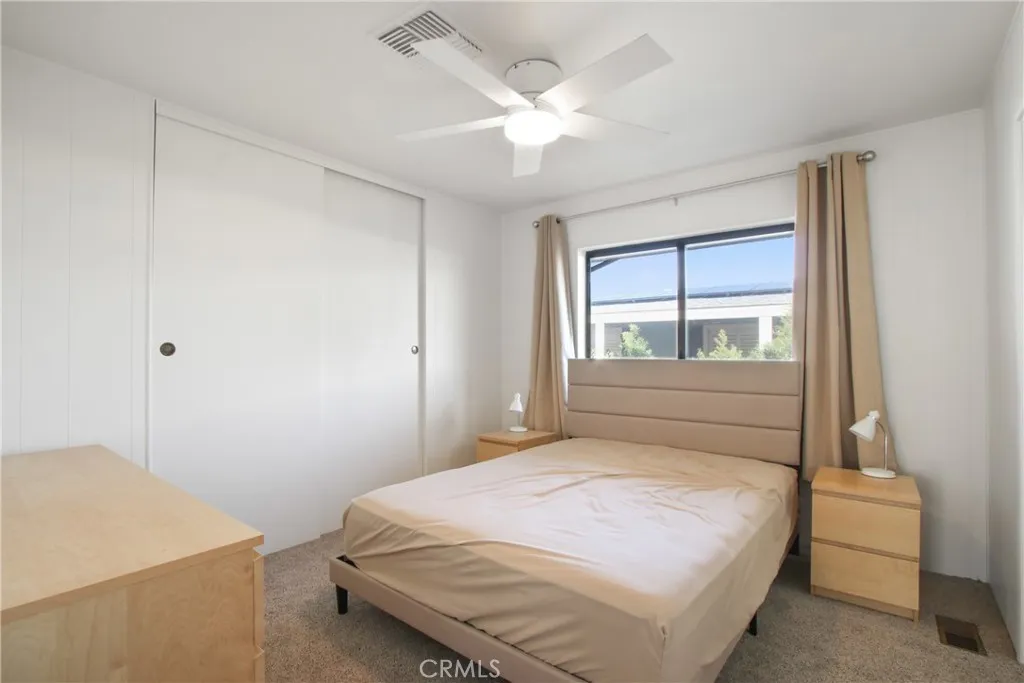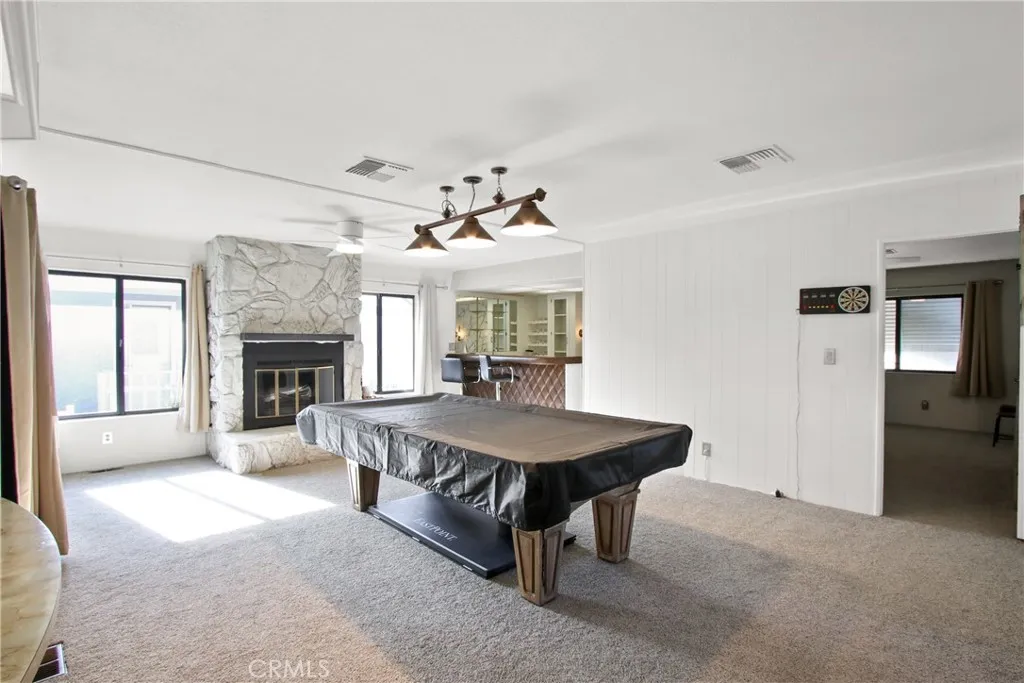 YOU OWN THE LAND! SELLER IS AMENABLE TO PUTTING HOME ON PERMANENT FOUNDATION! The PERFECT LIFESTYLE FOR THE ACTIVE SENIOR includes pickleball, tennis, pool, gym, clubhouse, cornhole, shuffleboard, and game room with ping pong and darts! Welcome to this charming and INVITING manufactured home in the desirable East Lake Estates 55+ community in Hemet! Inside youll find a bright, airy layout filled with natural light from large windows and carpet throughout for added comfort. When first entering you are greeted with a spacious living room/dining area combo. Designed with entertaining in mind, the home features a large family room with a cozy fireplace that creates the perfect gathering space. The kitchen opens into the living room, making it easy to host while staying connected with guests! A standout feature is the built-in bar area giving off a speak easy feel~perfectly designed for entertaining, whether youre mixing cocktails, setting up a coffee station, or creating a fun gathering space for friends and family. Both the kitchen and built-in bar offer plenty of cabinet space for storage and organization. Theres also a convenient built-in desk space that is ideal for hobbies, organization, or a home office setup. The spacious primary suite offers a relaxing retreat with a walk-in closet and a spa-inspired bathroom featuring a jetted soaking tub, separate walk-in shower, and dual sinks for added comfort. There is a separate laundry room for added functionality as well! Outside, enjoy a large porch area thats perfect for sitting, relaxing, and enjoying the fresh air, along wit