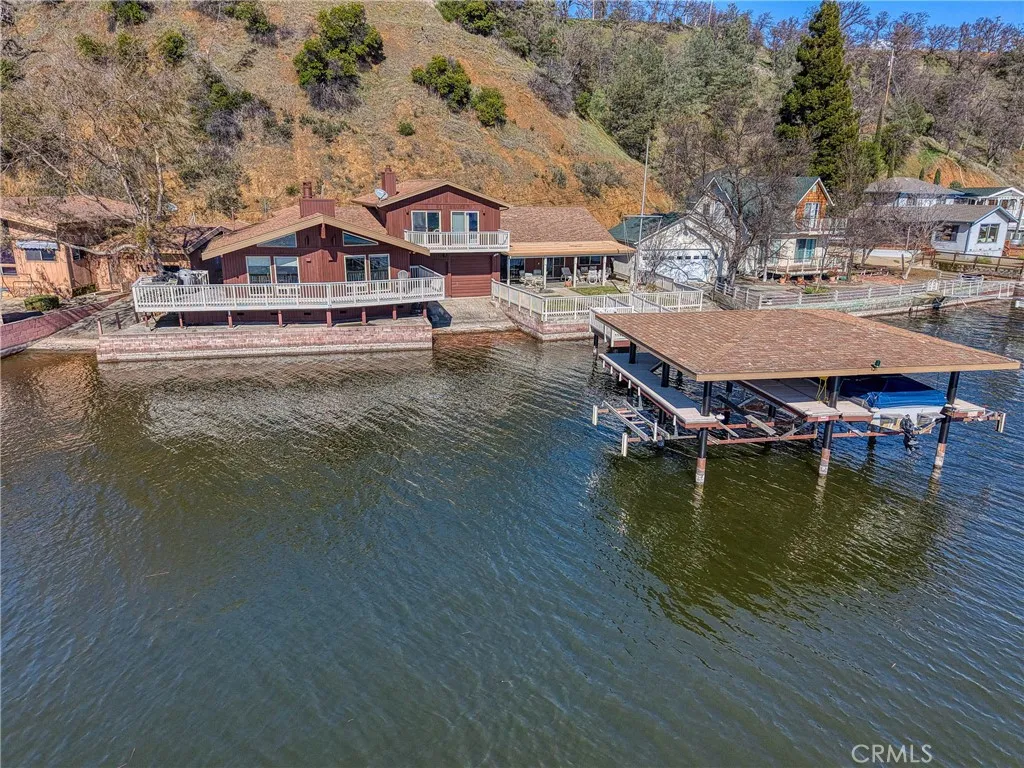 This gorgeous lakefront property features multiple units, a private launch, and a dock equipped with two power boat lifts. Owned by the same family for generations, the home has been meticulously maintained and modernized for todays buyer. The main residence was designed with an open floor plan and large picture windows that frame stunning lake and mountain views. The great room boasts vaulted exposed-beam ceilings and integrates seamlessly with the dining area and a remodeled kitchen. The kitchen features stainless steel appliances, ample counter space, and an impressive center island with seating for six. A sliding door off the dining area provides easy access for outdoor dining and enjoying sunsets over Mt. Konocti. The main home offers two bedrooms. The lower-level bedroom shares a custom-tiled hallway bathroom with a walk-in shower. The upper-level primary suite includes a fireplace, private deck, laundry center, office space, and a walk-in closet. The primary bathroom features custom tiling and a soaking tub. Additionally, there is an attached oversized two-car garage with pull-through access to the private boat launch, plus a two-car carport. The second unit includes a one-car garage, two bedrooms, and one bathroom. It features an open and airy great room and a tiled kitchen. Sliding doors lead to an attached patio, a landscaped yard, and the private power dock with two boat slips. This home is situated in a prime location with deep waters. Located only 2.5 hours from San Francisco and 2 hours from Sacramento, this property offers seamless access to Clear Lake, where