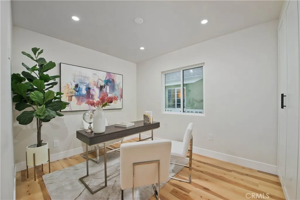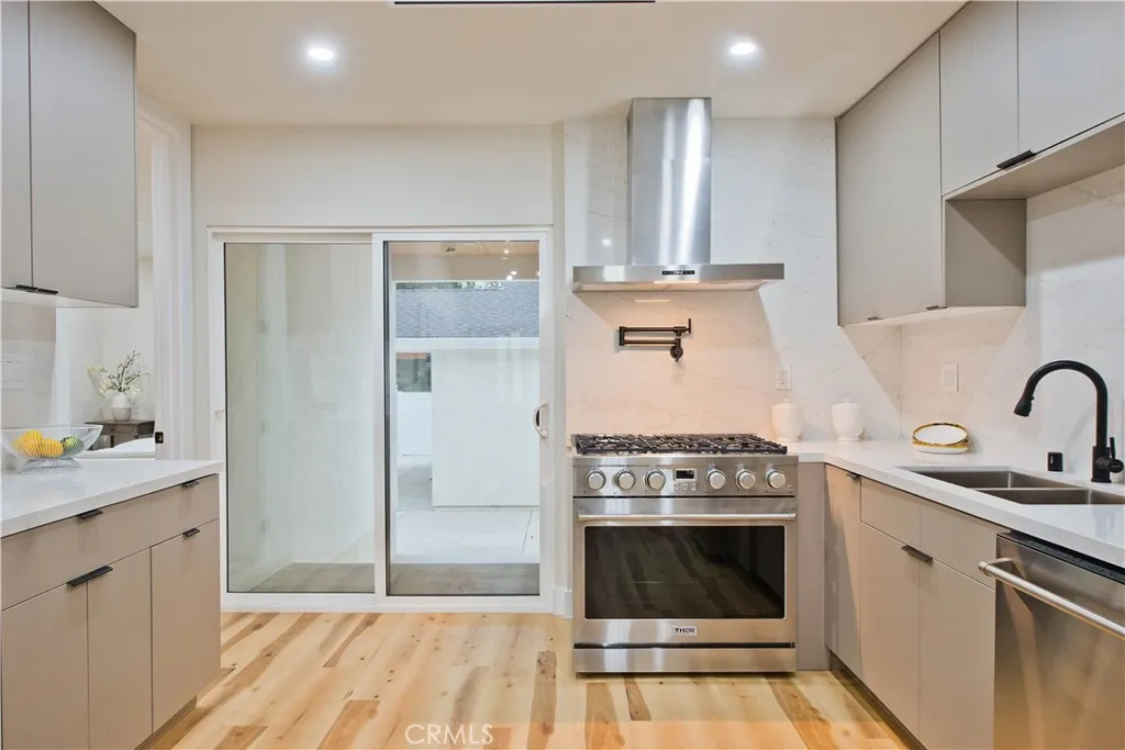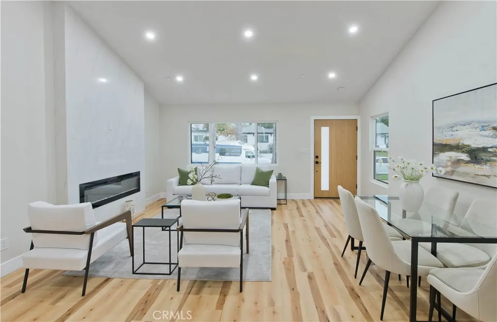 Discover a rare investment and lifestyle opportunity at 17905 & 17907 Bullock St in the highly sought after neighborhood of Encino Park. This thoughtfully upgraded dual-residence property offers exceptional flexibilityperfect for extended families, generating rental income, or living in one home while leasing the other. The main home has been completely remodeled and spans 1,753 square feet with 4 bedrooms and 3 bathrooms. Bright, open, and contemporary, the living room features soaring ceilings, luxury vinyl plank flooring, and a seamless open-concept design ideal for everyday living and entertaining. The chefs kitchen is a standout, appointed with premium Thor stainless steel appliances, sleek quartz countertops with a waterfall-edge peninsula, a full-height quartz backsplash, walk-in pantry, and convenient pot filler. The living area centers around a striking quartz-framed electric fireplace, creating a warm yet modern focal point. The spacious primary suite serves as a private retreat, complete with a walk-in closet and spa-inspired bath showcasing a soaking tub and designer-tiled shower. Additional highlights include a junior suite, dedicated laundry room, tankless water heater, white stone accents, and a 1-car garage equipped with an EV charger. Built in 2025, the newly constructed ADU at 17907 Bullock St offers 752 square feet with 2 bedrooms and 2 bathrooms. Designed for privacy and efficiency, it features a separate entrance from Oxnard Street, carport parking, laundry hookups, fully electric systems, owned solar panels, and its own tankless water heatermaking it a