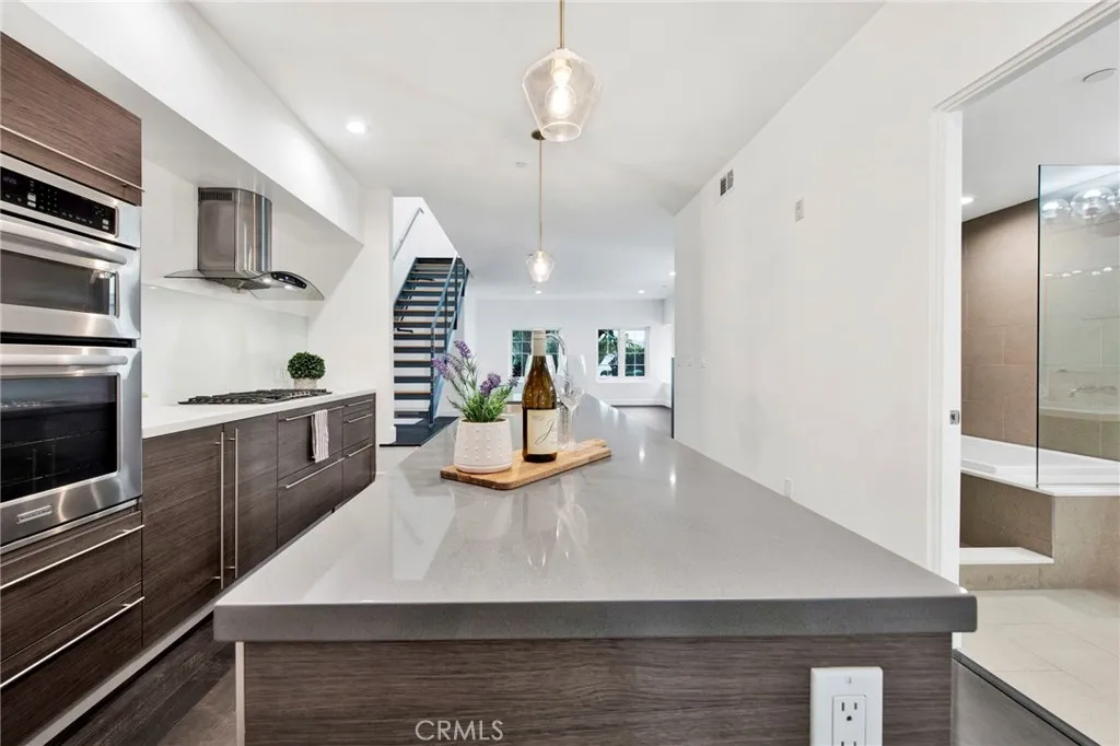 Welcome to the best of West Hollywood living! This modern, two-story top-floor condo offers sweeping panoramic views and sparkling city lights from its dramatic, open layout. The spacious floor plan features 2 bedrooms and 2 full baths, thoughtfully designed for style and comfort. The main level showcases hardwood flooring, floor-to-ceiling windows with custom shades, a gas fireplace, and an open kitchen/dining area ideal for entertaining. The chefs kitchen is equipped with stainless steel appliances, a convection oven, microwave, 5-burner gas cooktop, refrigerator, dishwasher, and a generous Caesarstone island that invites gathering. The second level hosts a private bedroom retreat complete with a large panoramic balcony, walk-in closet, and its own full bath. Additional conveniences include front-loading washer and dryer, two covered parking spaces in a gated garage, and a private storage closet. Set on a quiet, tree-lined street in prime West Hollywood, youre just moments from top restaurants, shopping, and entertainment. Dont miss the opportunity to call this stunning contemporary condo your next home.