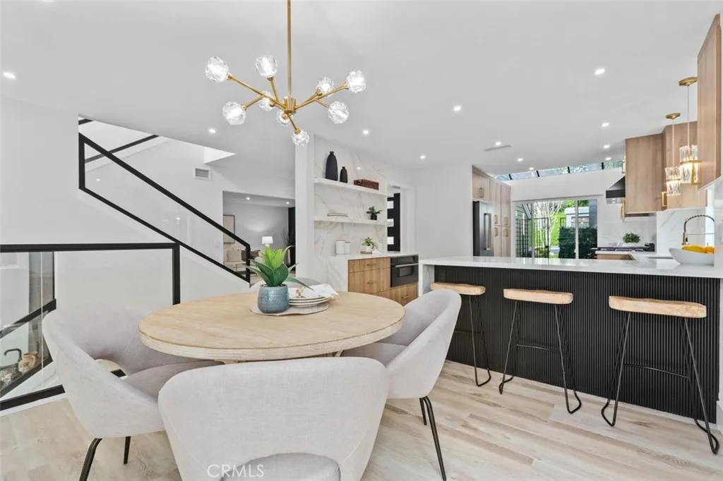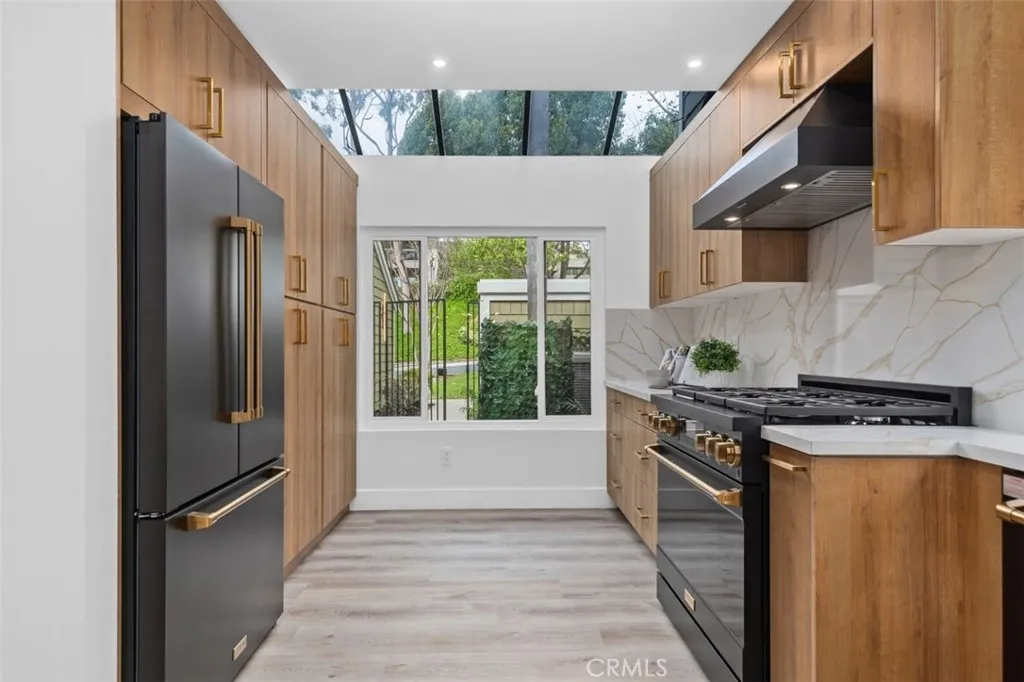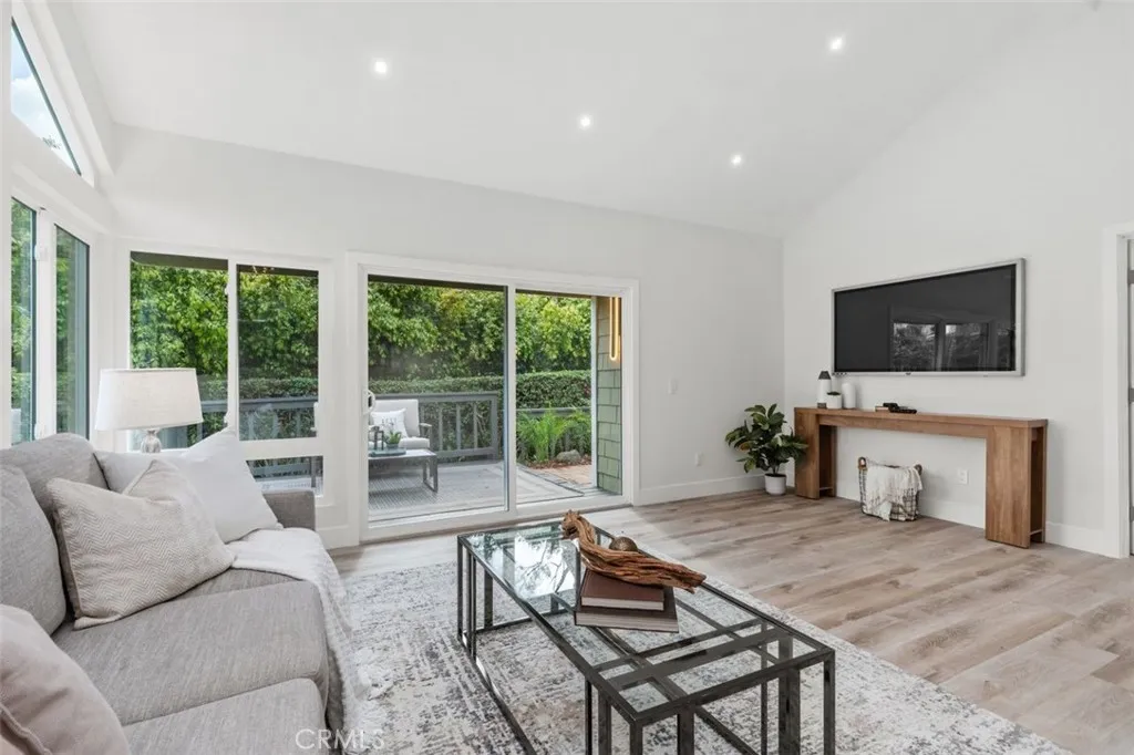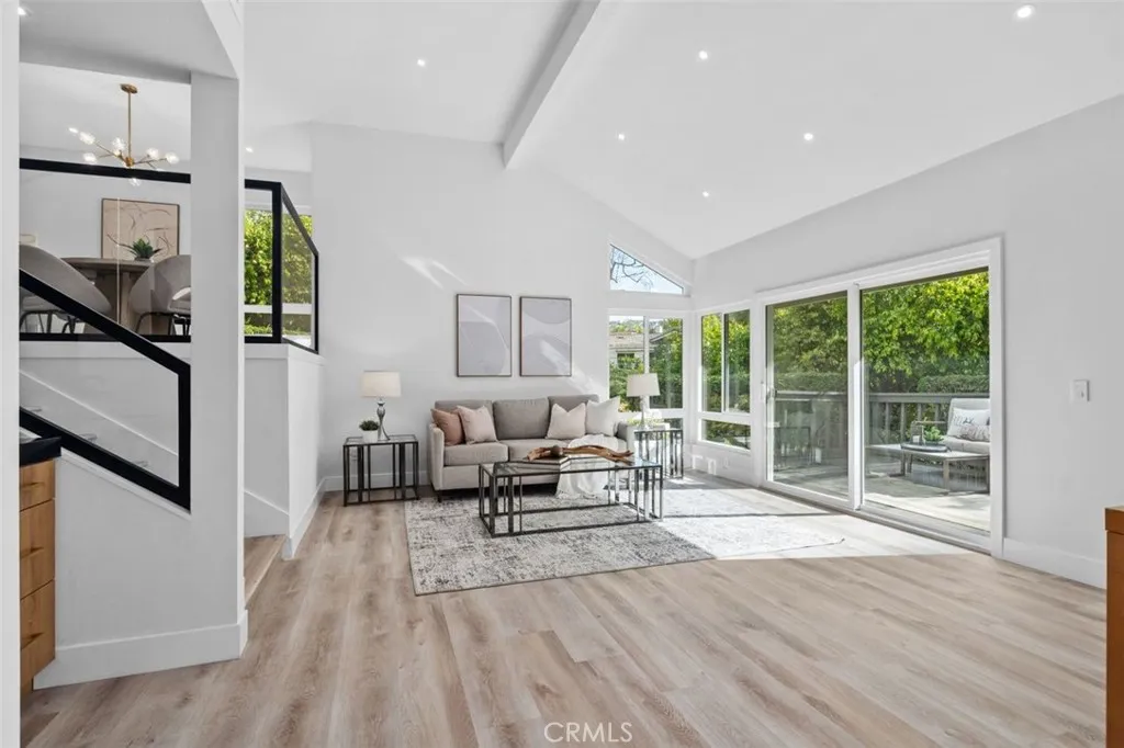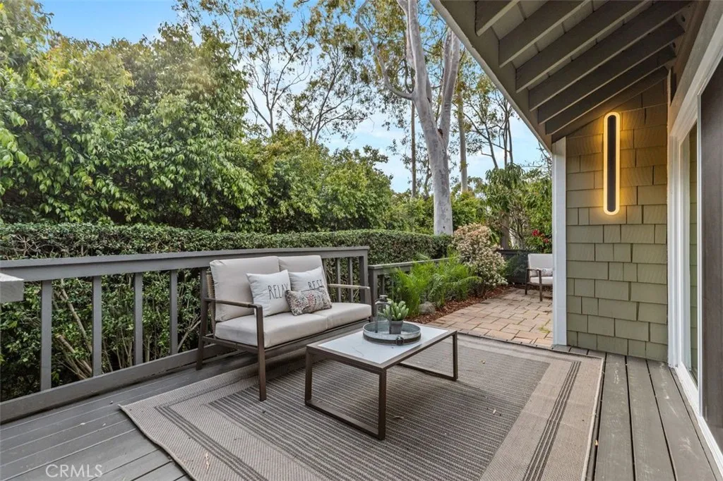A fully reimagined end-unit residence in the highly sought-after Turtle Rock community of Irvine, offering rare privacy and serene tree-lined views. With no neighbors on one side and no homes directly behind, this property feels like a private and peaceful retreat within one of Irvines most established and desirable neighborhoods. Inside, soaring ceilings and a clean modern aesthetic create an immediate sense of openness. Wide-plank luxury vinyl flooring, smooth ceilings, iron and glass staircase and refined finishes elevate every space. The family room flows seamlessly to a spacious enclosed patio framed by greenery, blending indoor comfort with tranquil outdoor living. A gated front courtyard adds both charm and privacy, creating a warm and welcoming arrival. The redesigned kitchen is as functional as it is striking, featuring custom cabinetry, quartz countertops, a dramatic double-waterfall island, custom quartz backsplash shelves, premium appliances, and a custom pantry. Each bathroom has been beautifully renovated with elevated finishes, while the primary suite offers a true spa-inspired escape with a Roman tub, separate shower, dual vanities, and a private balcony capturing mountain and city lights views. Extensive upgrades provide lasting value and peace of mind, including new windows and patio doors, all new interior doors and hardware, updated PEX plumbing, recessed lighting, and a fully updated HVAC system. A custom wet bar with a marble backsplash and a commercial dual-temperature wine fridge, along with a redesigned fireplace, an inside laundry room, and a 2-car