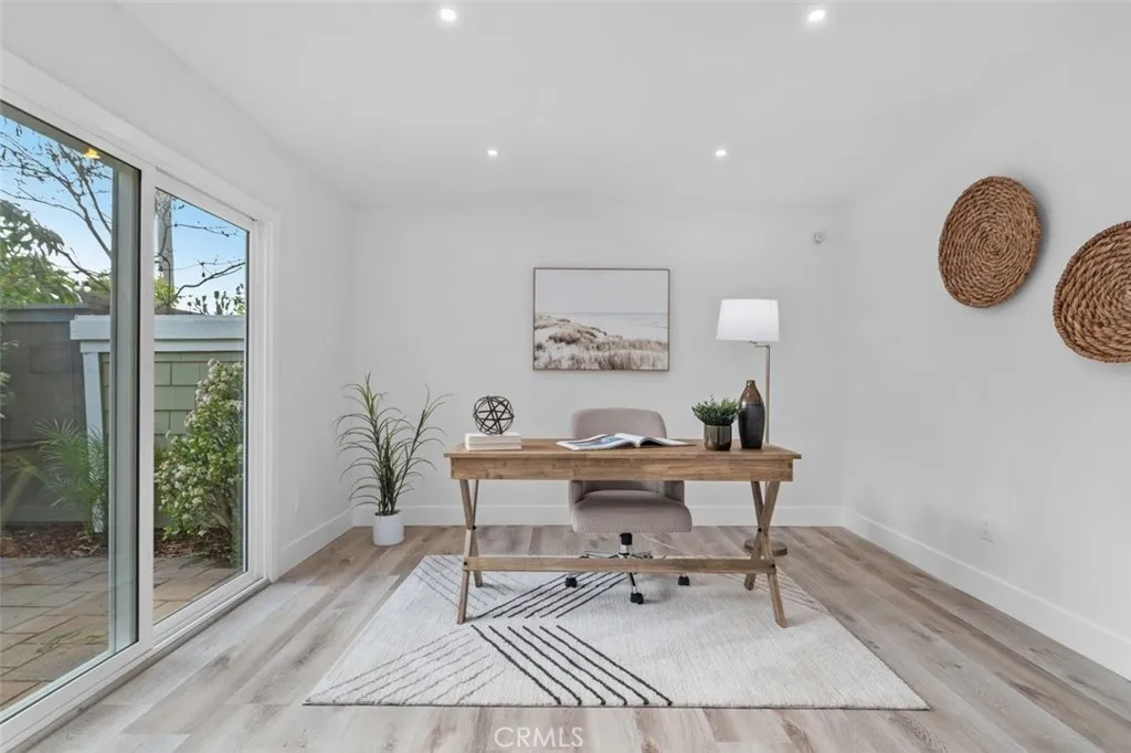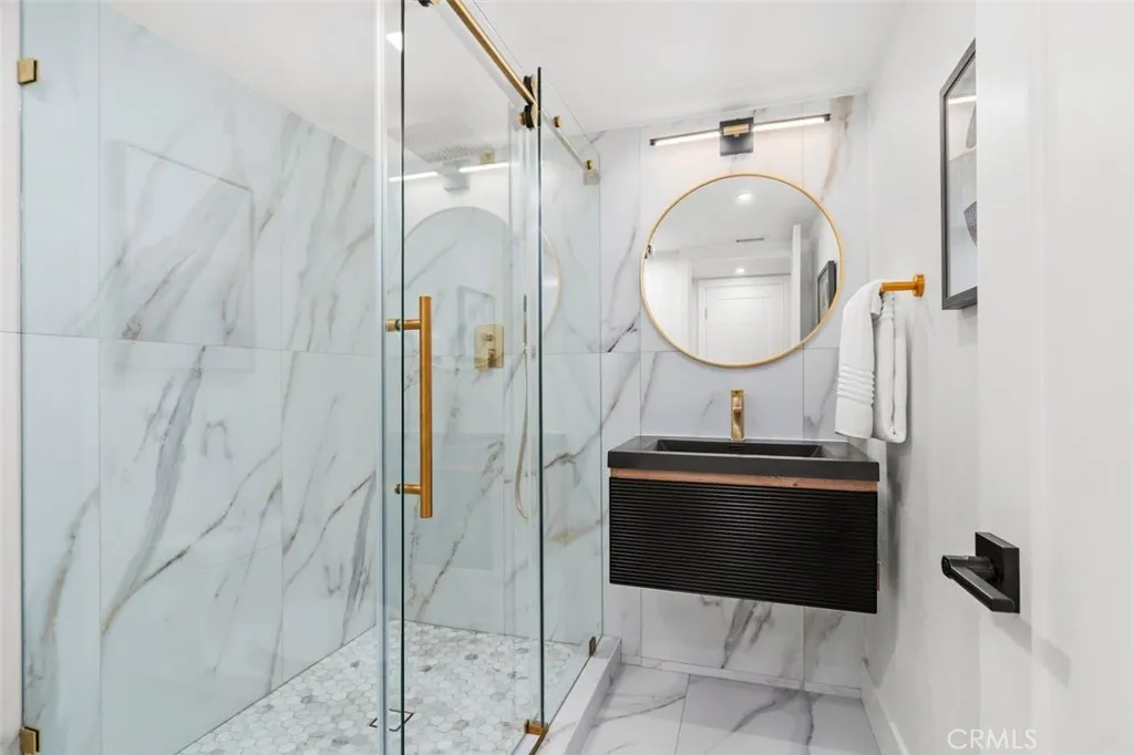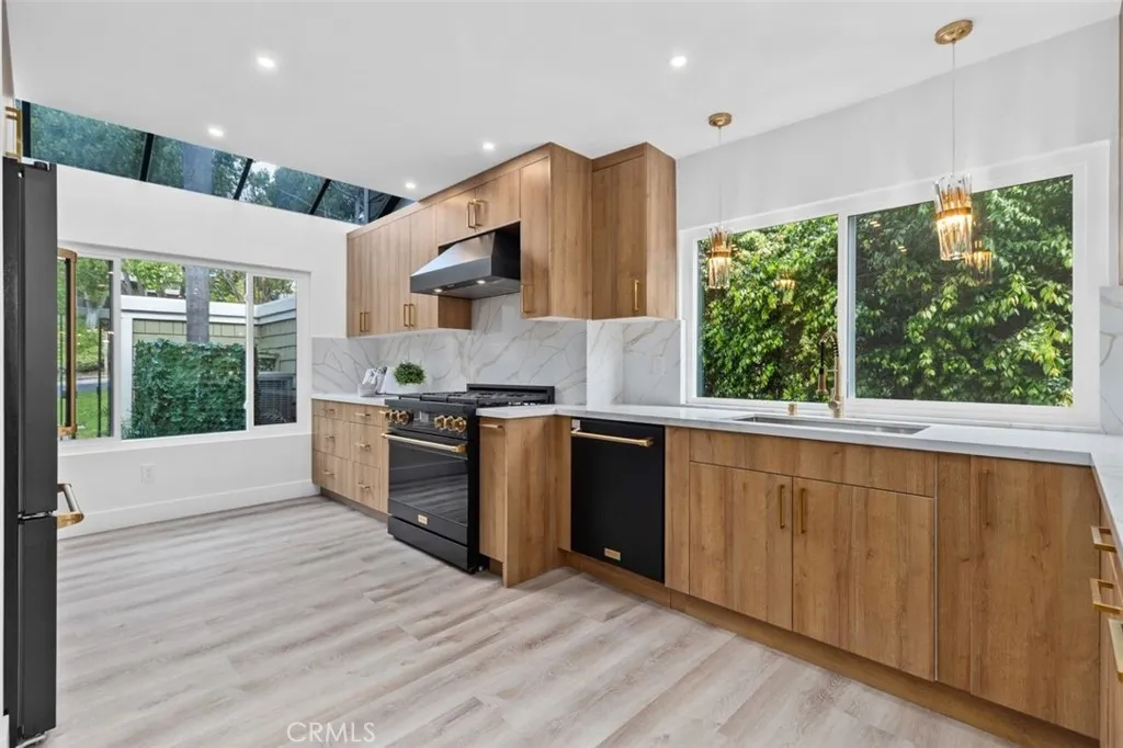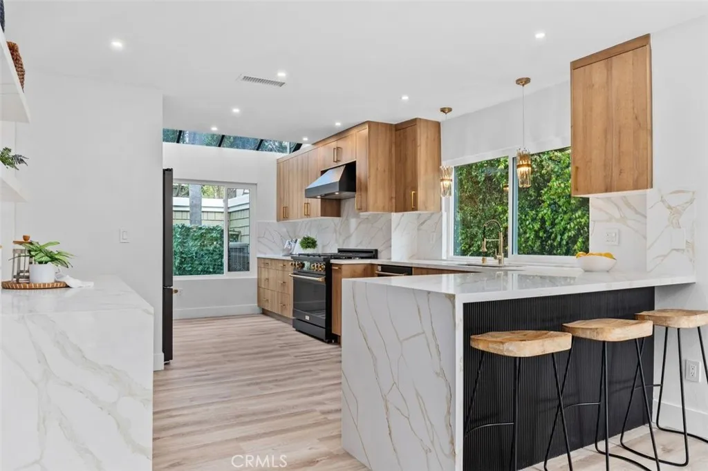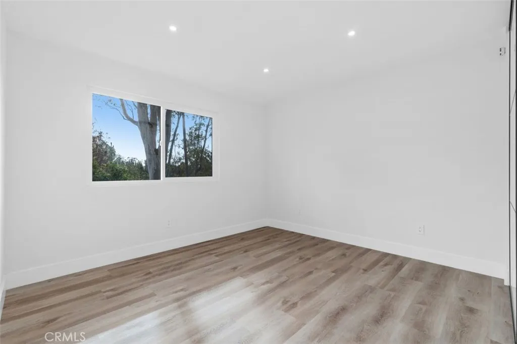 A fully reimagined end-unit residence in the highly sought-after Turtle Rock community of Irvine, offering rare privacy and serene tree-lined views. With no neighbors on one side and no homes directly behind, this property feels like a private and peaceful retreat within one of Irvines most established and desirable neighborhoods. Inside, soaring ceilings and a clean modern aesthetic create an immediate sense of openness. Wide-plank luxury vinyl flooring, smooth ceilings, iron and glass staircase and refined finishes elevate every space. The family room flows seamlessly to a spacious enclosed patio framed by greenery, blending indoor comfort with tranquil outdoor living. A gated front courtyard adds both charm and privacy, creating a warm and welcoming arrival. The redesigned kitchen is as functional as it is striking, featuring custom cabinetry, quartz countertops, a dramatic double-waterfall island, custom quartz backsplash shelves, premium appliances, and a custom pantry. Each bathroom has been beautifully renovated with elevated finishes, while the primary suite offers a true spa-inspired escape with a Roman tub, separate shower, dual vanities, and a private balcony capturing mountain and city lights views. Extensive upgrades provide lasting value and peace of mind, including new windows and patio doors, all new interior doors and hardware, updated PEX plumbing, recessed lighting, and a fully updated HVAC system. A custom wet bar with a marble backsplash and a commercial dual-temperature wine fridge, along with a redesigned fireplace, an inside laundry room, and a 2-car