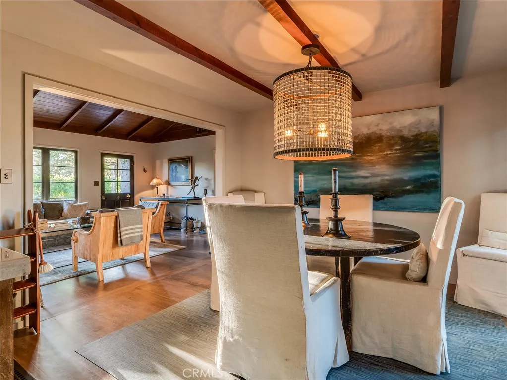 Tucked into a magical setting, this French-inspired retreat is a rare, fully reimagined property blending old-world charm with exceptional craftsmanship and modern amenities. Thoughtfully redesigned by Hall Pardoe Design, the home evokes French countryside romance while offering todays comforts, all within a private, multi-lot sanctuary in Cambria. The main house and cottage have been comprehensively upgraded, beginning with essential structural and exterior improvements, including regraded drainage, new metal roofs, and re-stuccoed exteriors with integrated color for lasting beauty without repainting. Fresh interior and exterior paint throughout enhances every space, while new French doors in the dining room open to expansive IPE decks off the dining room, guest bedroom, and primary suiteideal for morning coffee, sunset dining, and peaceful outdoor living. Inside, the home has been opened and refined with intention. The remodeled and extended kitchen, updated bathrooms, and newly opened wall between the living and dining rooms enhance light and flow. All drywall in both structures has been resurfaced and retextured; doors, woodwork, and floors have been stripped, bleached, custom-stained, and refinished for a cohesive, artisanal feel. Vaulted cedar ceilings crown the living room, library/TV room, primary suite, bath, and closets, with walk-in closets in both the guest and primary bedrooms. Finishing details include custom oil-rubbed Reggio floor registers and Rejuvenation push-button dimmers with antique bronze plates. Modern infrastructure discreetly supports the romance,