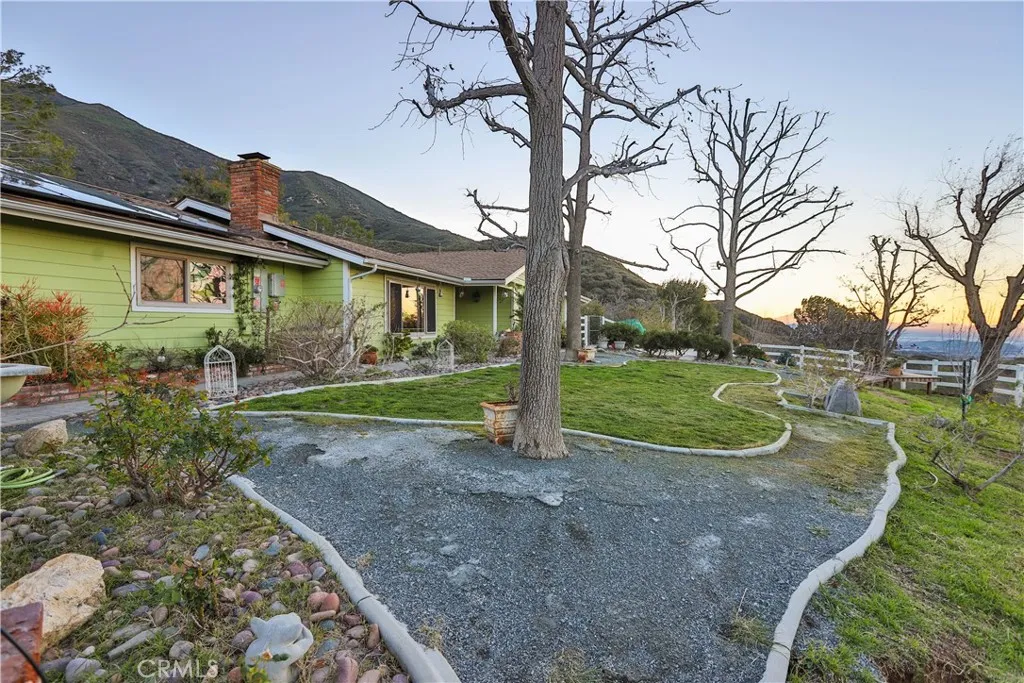 Perched high above the valley in the sought-after community of Devore Heights, Starlight Canyon Estate is a rare 12-acre sanctuary where sweeping mountain views meet glittering city lights below. This extraordinary property offers the privacy and serenity of rural living while remaining just 15 minutes from Rancho Cucamonga, 25 minutes from Redlands, and under an hour from Los Angeles. The fully remodeled 3-bedroom, 2-bath residence has been thoughtfully upgraded throughout, including new interior and exterior paint, a new roof, new HVAC system, new water heater, updated electrical panel, whole-house fan, green environmental ductwork, NASA-grade AirScrubber, whole-house fresh water drinking system, and resurfaced kitchen cabinetry. Hardwood floors flow throughout the home as sweeping valley views unfold from room to room, each offering its own stunning vantage point. The spa-like primary bathroom is a private retreat, complete with a peaceful soaking tub for ultimate relaxation. Outside, the property unfolds like a private resort. Enjoy a Seagard pool with new liner, a CalSpa hot tub that seats six, rustic gardens, multiple fenced yards, and expansive hardscaping. Equestrian and animal lovers will appreciate the livestock barn with indoor/outdoor stalls, chicken coop, training circle, and direct access to private canyon trails that connect to the greater Devore Heights and Glen Helen trail system. A natural spring feeds a private stream running through the property, adding to the estates rare beauty and tranquility. Additional highlights include a multi-panel solar system p