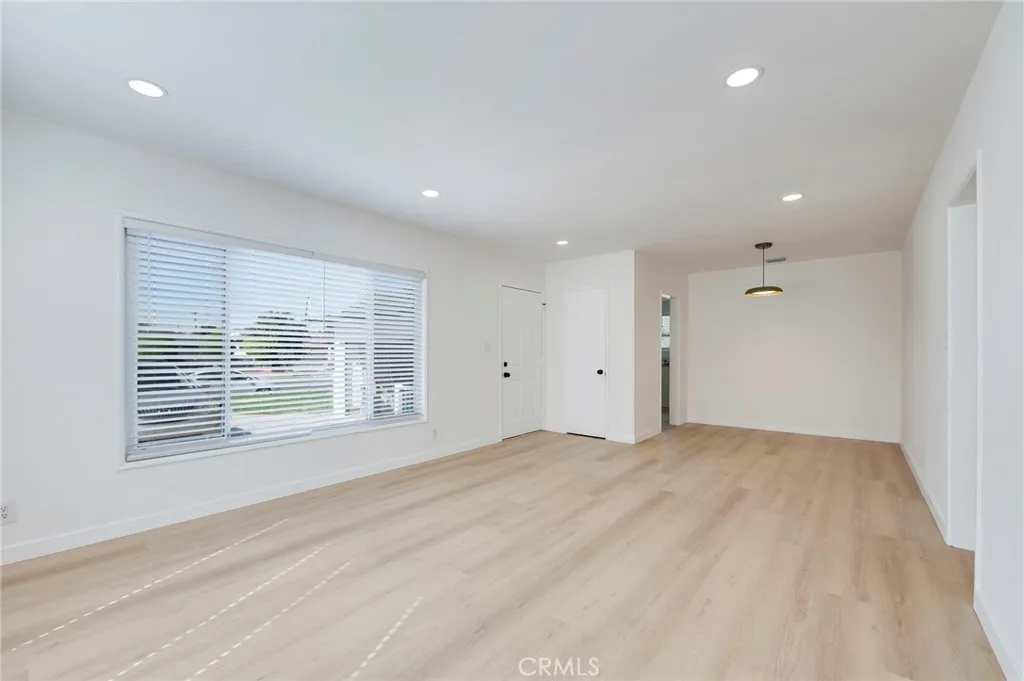 THIS HOME IS A MUST SEE! This rare single-level residence was imagined and designed by @abradesigns to offer an exceptional blend of privacy, space, and modern comfort. Step inside to a bright, open-concept layout filled with abundant natural light, complemented by fresh interior paint, brand-new light oak luxury vinyl plank flooring, and new two-inch Faux Wood blinds throughout. The home features three bedrooms and one bath, plus a valuable bonus office spaceideal for todays work-from-home needs. Enjoy peace of mind under a brand-new roof, providing worry-free living for years to come. The spacious living room is perfect for gatherings and entertaining, complete with recessed lighting and an adjoining dining area. The thoughtfully updated kitchen showcases white shaker cabinetry, quartz countertops, coordinating hardware, a Fireclay sink, stainless steel five-burner gas range, garbage disposal, a cozy kitchen nook, and direct access to the attached two-car garage. The bathroom has been tastefully reinvented with timeless materials and refined detailing, offering a functional and elevated aesthetic. Enhancements include a new bathtub with a sleek surround enclosure, contemporary hardware and fixtures for both the tub and the light oak floating double-sink vanity with matching storage along with soft-close hardware, modern LED lighting, mirror, and porcelain tile flooring. All bedrooms are generously sized and equipped with modern ceiling fans with LED lighting. The primary bedroom offers enhanced privacy, expanded space, and a generous closet. Additional improvements includ