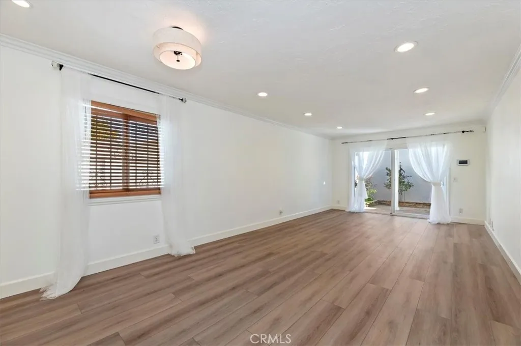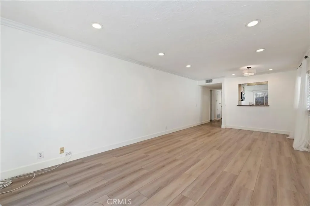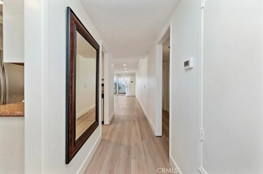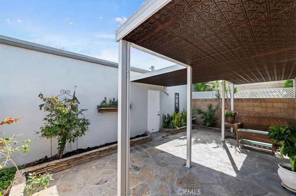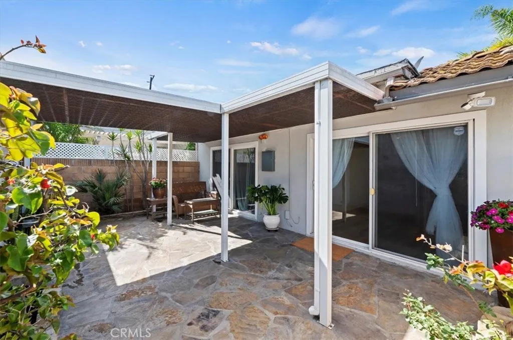 Welcome to the city of Anaheim, where your steps away from the Magic Kingdom of Disneyland and a short ride to the Honda Center or Angel Stadium to watch some baseball. This single story beauty is located in the private community of Villa Del Amo, which is surrounded by one of the prime areas in Southern California. This charming home features 2 bedrooms and 2 full baths with just under 1100 square feet of living space. Walk into the home and make your way into the main living space where you'll find wood-style plank tile flooring throughout the home. Just off the entrance, you'll find the kitchen which has been upgraded with custom cabinetry, granite countertops with a custom travertine backsplash, stainless steel appliances and a built-in dining nook. Make your way down the hall and you'll find the guest bedroom and the large, beautiful Master suite. The guest bathroom features upgraded cabinetry and a tub/shower combo beautifully surrounded in custom tile. The Master suite offers a peaceful retreat with an on-suite bathroom. The bathroom has a large walk-in shower decorated in custom tile. This home has 2 separate sliders that gain access to the beautiful, peaceful pergola separating the garage from the living area. The garage features brand new epoxy flooring, laundry hook-ups and plenty of cabinetry for storage. This home has been newly painted, recessed lighting throughout and has crown moulding and high baseboards. The home has a custom Water Softening System for entire home that is installed in the garage. This community offers a pool/spa and BBQ areas, a clubhouse