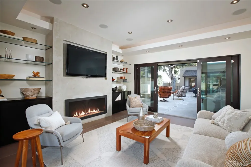 Oakmont Country Club is a treasure with 100 years of history within the Verdugo Woodlands neighborhood. Homes that enjoy a view of its lush grounds are highly sought after, but only 10 homes are on the course and can walk out onto the 10th fairway. This is one of those rare and special homes. The large one-story modern design utilizes a sophisticated textural palette and is filled with natural light via walls of glass bringing the beautiful surroundings within the open floor plan of three bedrooms, and four baths around a central courtyard. A glass pivot door opens to a large entry and a huge living room with square cut slate floors, an elegant fireplace, custom built-ins, and floor to ceiling glass doors and windows. The artfully remodeled kitchen is central to the design and right in the middle of the entertainment flow with custom cabinetry, polished stone counters, stainless appliances, and a gorgeous granite sink. Other than Augusta, the family room is the best place to watch the Masters with a view out over the lush golf course. The primary suite enjoys a huge primary bedroom with views out over the course, a large walk-in closet, its own remodeled primary bath complete with a water fall soaking tub. The other two bedrooms are suites as well with their own updated baths and large closets. Just a few of the many features include a newer roof, two updated HVAC systems, updated copper plumbing, a 200-amp electrical panel, lovely smooth coat exterior stucco, raised planting beds, an oversized-out door entertaining space with built-in BBQ, fountains and a fireplace, and an