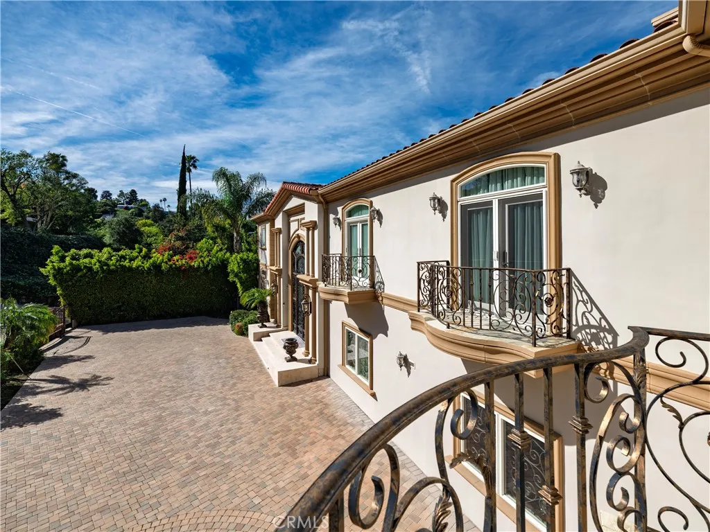 Located behind private gates in one of Encinos most desirable South of Ventura Boulevard locations, this impressive Mediterranean estate offers exceptional privacy, grand scale living, and panoramic valley views. Built in 2009, the residence showcases timeless architecture and elegant finishes throughout. A dramatic two-story entry with custom wrought-iron double doors, soaring ceilings, and a sweeping staircase creates an unforgettable first impression. Rich hardwood floors, extensive custom millwork, and expansive windows fill the home with natural light while framing beautiful views of the surrounding hills and valley. The thoughtfully designed floor plan offers multiple formal and casual living spaces ideal for entertaining. The gourmet chefs kitchen with custom cabinetry, stone counters, and center island opens to spacious gathering areas and flows seamlessly to the outdoor entertaining spaces. The expansive primary suite serves as a luxurious retreat, featuring a sitting area with fireplace, balcony overlooking the valley, spa-style bathroom with soaking tub and walk-in shower, and large custom walk-in closets. Additional luxury amenities include a home theater, elevator, fitness room, wet bar lounge, and beautifully appointed bathrooms throughout. Designed for indoor-outdoor living, the resort-style backyard features a sparkling pool and spa, multiple lounge areas, and covered terraces ideal for year-round entertaining while enjoying sweeping valley views. A private gated motor court with expansive paver driveway and attached three-car garage provides ample parking a