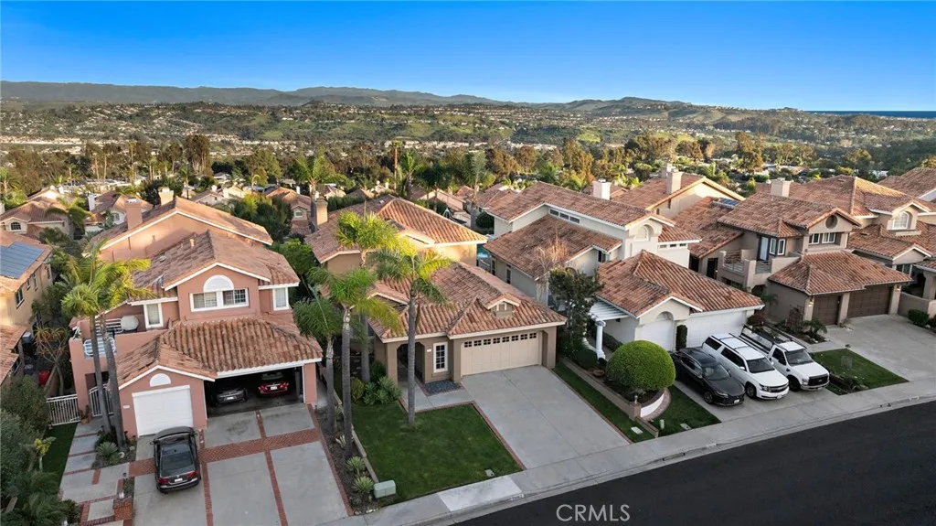 Perched within the highly sought after community of Niguel Summit in Laguna Niguel, this residence offers an exceptional setting just moments from the coast, scenic hiking trails, and some of Southern Californias most celebrated recreation. Less than six miles from the Pacific Ocean, the location places you near the Montage Resort, championship golf, shopping, dining, downtown Dana Point, and Laguna Beach. It is a position that feels elevated yet effortlessly connected to everything that defines coastal Orange County living. Inside, the floor plan is both rare and versatile, featuring two main floor bedrooms, including a primary suite and an additional bedroom with a full bath that easily functions as a guest room or office. Upon entry, soaring two story ceilings and an abundance of natural light create an immediate sense of openness. The living and dining areas flow together seamlessly, centered around a fireplace and overlooking the patio. There is an unmistakable warmth to these spaces, the kind that feels welcoming from the moment you step inside. The kitchen offers generous storage and a charming breakfast nook designed for easy mornings and casual meals. Upstairs, a flexible loft provides space for a bonus room, media area, or play space, with an attached balcony capturing calming coastline and canyon views. An additional bedroom and full bath complete the upper level. The backyard extends the living space outdoors with a private patio and room for entertaining, gardening, or relaxed evenings at home. Within Niguel Summit, residents enjoy a beautifully maintained hill