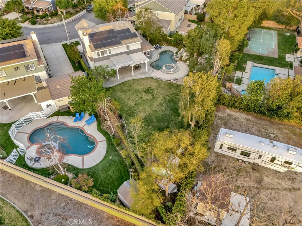 Rarely available Cape Cod-style home on an expansive nearly 12,000 sq. ft. lot in East Simi Valley! This spacious 4 bedroom, 3 bath home with nearly 2,460 sq. ft. offers timeless charm with a welcoming wraparound porch and a versatile floor plan perfect for modern living. Inside, you'll find hardwood flooring, upgraded finishes, and bright open living spaces. The family room features a cozy fireplace and built-in entertainment center, while the kitchen includes a large island, glass-front cabinets, pantry, built-in desk, 5-burner stove, double ovens, and abundant storage. A downstairs bonus room with separate entrance offers flexibility for a home office, guest room, or private studio. Upstairs, the spacious primary suite features a luxurious bath with soaking tub, separate shower, dual vanities, and walk-in closet. One bedroom includes a private balcony, and additional bedrooms feature custom closets. The resort-style backyard is an entertainers dream with a freeform pool and spa, rock waterfall, large grassy area, covered patio with surround sound, and even a charming two-story playhouse. With its oversized lot, classic Cape Cod curb appeal, and incredible outdoor living, this home is a rare Simi Valley opportunity.