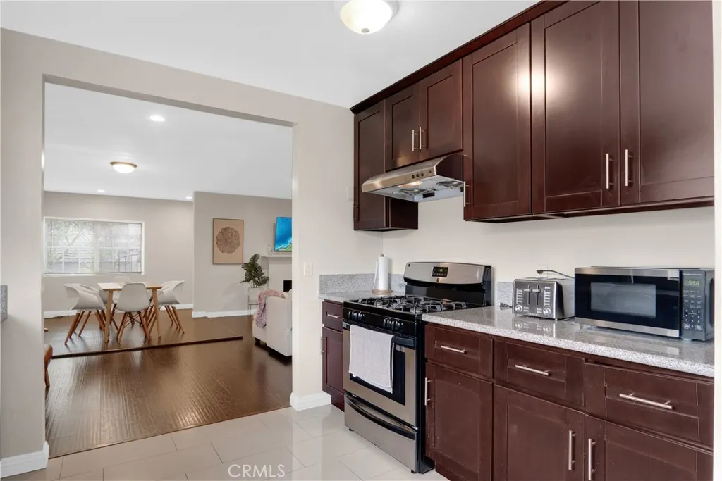 Beautiful front house for lease, totally remodeled one level 3 bedroom, 3 bathroom house on 2 on a lot. Lush dark hardwood floors and dual pane windows throughout. Grey tile entry opens onto large Living Room with fireplace and Dining Area. Large kitchen with new tiled floor, beautiful dark wood cabinets, new grey granite counter tops, stainless steel gas cooker and a refrigerator. Three good size Bedrooms each with its own en-suite bathroom and closet. Each bedroom had its own new wall AC unit with individual temperature control. At the rear is a concrete Patio space for entertaining with block wall for privacy. 2 car detached garage.