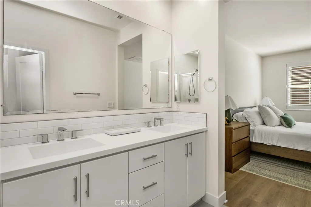 Built in 2019, this beautifully designed three-level townhome blends modern style with warm, inviting spaces that feel instantly like home. Thoughtfully laid out for both comfortable living and effortless entertaining, every level offers something special. The main living floor welcomes you with a bright, open-concept layout where the living room, dining area, and kitchen come together in a seamless space filled with natural light. The kitchen is a true centerpiece, featuring crisp quartz countertops, sleek self-closing cabinetry, and an oversized island perfect for gathering with friends, hosting dinners, or enjoying your morning coffee. The clean, all-white design gives the space a timeless, fresh feel that pairs beautifully with the durable vinyl flooring that runs throughout the home. Upstairs, the generous primary suite feels like a peaceful retreat, offering a spacious walk-in closet, expansive dual vanity, walk-in shower with beautiful designer tile flooring, and a private toilet room for added comfort. The 2nd bedroom completes the upper level, with ample space and an en-suite bathroom, making it perfect for visitors or multigenerational living. The first level offers a private work-from-home office space, ideal for remote work, a reading nook, or a creative studio. Just steps away is the attached two-car garage with well-maintained concrete flooring, providing both convenience and a polished finish. Central heating and air conditioning keep the home comfortable year-round. Outside your door, the community offers inviting shared spaces including a sparkling pool, BB