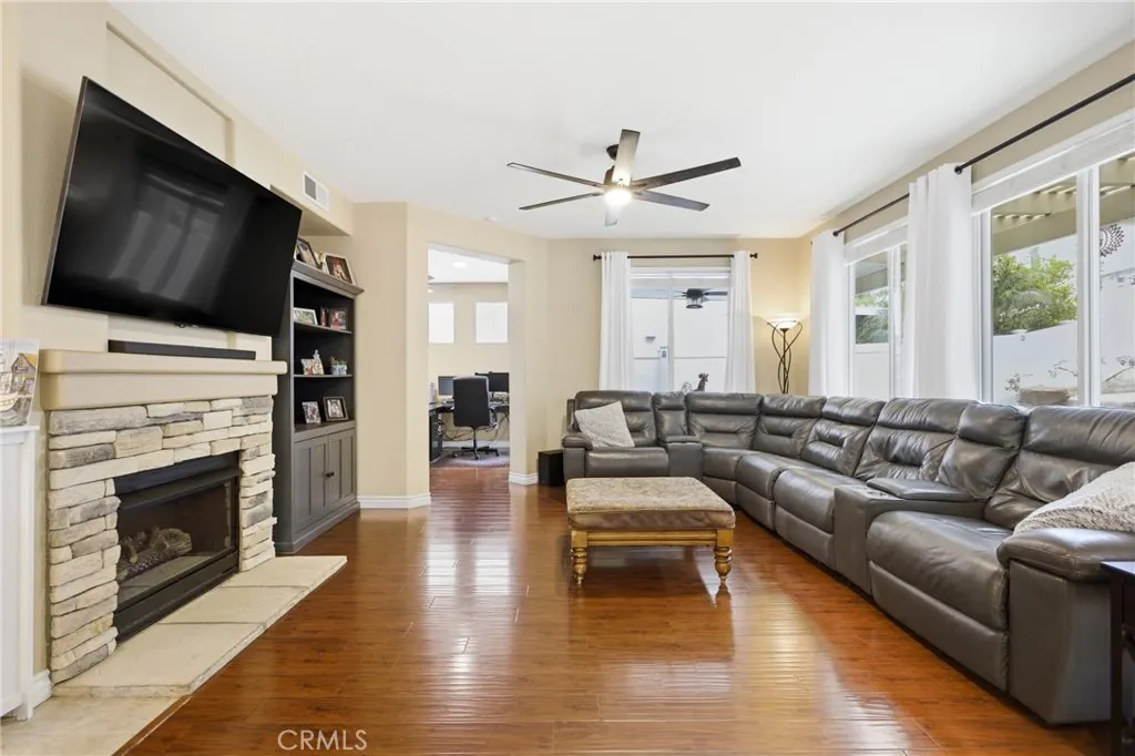 GATED COMMUNITY | LOW HOA | POOL AND SPA | ENTERTAINERS DREAM BACKYARD | 4 BEDROOMS | CUSTOM UPGRADES | GREAT OAK HS BOUNDARY | You have Arrived! Welcome to this beautifully upgraded home. As you enter, youre greeted by the formal living and dining area. Just beyond is the family room featuring a stone fireplace. The family room flows into the kitchen complete with a center island, refinished cabinets with a high-quality lacquer finish, dark stainless LG appliances, and space for a breakfast or dining area. Laminate flooring runs through the living, dining, family room, and primary bedroom, complemented by custom interior paint, 4 baseboards in main areas and the primary suite, ceiling fans in every room, and a whole house fan. Anderson windows in the kitchen, family room, and primary bedroom provide abundant natural light. Upstairs youll find the spacious primary suite with a fully remodeled bathroom, along with three additional bedrooms, a full hall bathroom, and a convenient upstairs laundry room. Step outside to an entertainers dream backyard featuring a custom rock pool and spa with waterfall, mature landscaping, front and rear hardscape, and low-maintenance turf in both the front and backyard. The outdoor space also includes a bar/BBQ area and a large Alumawood patio cover with ceiling fans and power outlets. Additional highlights include vinyl fencing, custom molding around both sliding doors, wired internet for TV and office, and built-in garage cabinets with overhead storage. With approximately $100,000 in recent improvements since 2022 (not including the pool), th