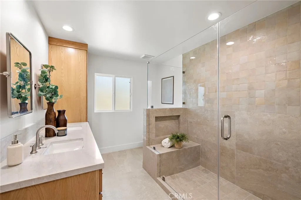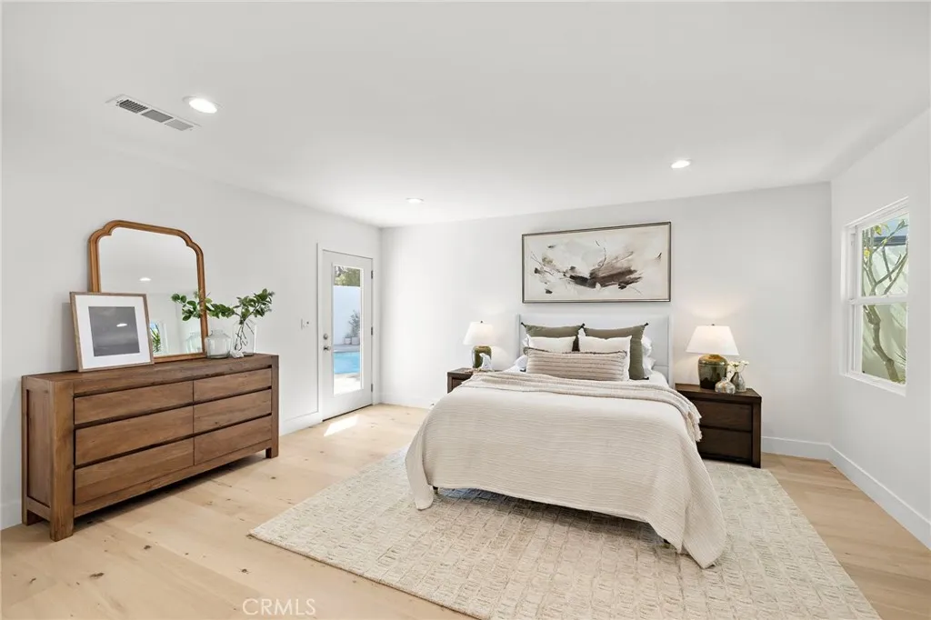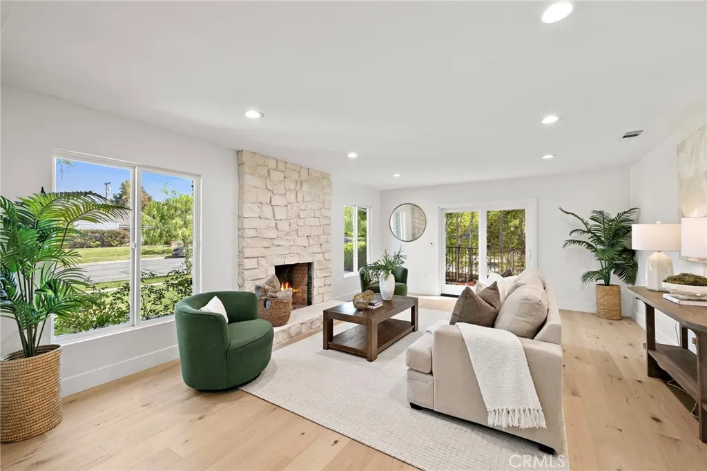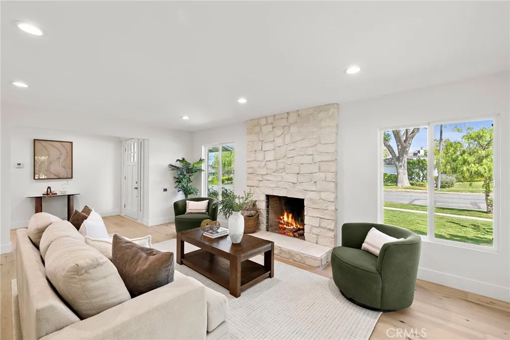 PARK ESTATES | This beautifully upgraded residence offers a rare opportunity to own a home with brand-new finishes and a fresh, never lived in feel. Completely transformed with today's most desired features, this stunning residence embodies the warmth and ease of an organic California ranch style home where curated design, natural materials, and thoughtful craftsmanship come together in perfect harmony. Every space has been thoughtfully redesigned with a focus on effortless indoor-outdoor living featuring all new engineered oak flooring and a cohesive palette that guides you through beautifully redefined spaces. The formal living room (potential home office/flex space/fourth bedroom) off the entry features a fireplace and sliders leading to a serene private patio, one of several outdoor spaces throughout the property. The gorgeous and BRAND NEW open concept kitchen features a large island with Taj Mahal quartzite, custom backsplash, generous use of cabinetry, all-new appliances, and an inviting flow into the family room. A walk-in butlers pantry with beverage service, cabinetry, and wine fridge elevates both daily living and effortless entertaining. A well-placed powder room off the kitchen also connects directly to the pool. The family room centers around a cozy fireplace and opens to the dining room. All the bedrooms have new Milgard windows and bathrooms have been fully upgraded with designer-selected tilework, fixtures, and finishes. The separate bedroom wing boasts three bedrooms and two additional bathrooms. The primary suite off the pool features backyard views, a wa