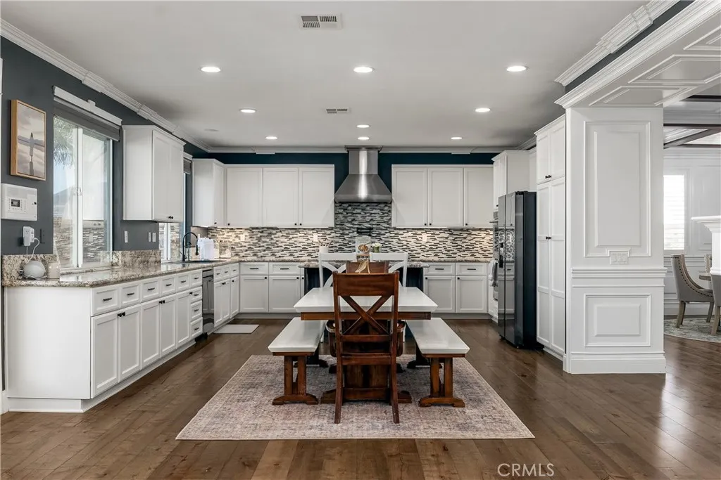 Well-executed and thoughtfully upgraded, this nearly 4,000 sq ft home in Crowne Hill includes paid solara meaningful advantage from day oneand is conveniently located in South Temecula. Inside, the home carries a custom feel with detailed wall treatments, millwork, and exposed beam ceilings that add depth and character beyond the typical. The layout offers a balance of defined spaces and open flow, including formal living and dining areas plus a separate office/den. The kitchen is designed for real usefeaturing extensive white cabinetry, generous granite workspace, a functional center island with bar seating, upgraded appliances, and a double oven. It opens to the dining area and an oversized family room with fireplace and media niche, creating a natural hub for daily living and entertaining. A main-floor bedroom and full bath offer flexibility for guests or multi-generational living, along with a laundry room that includes added storage and a utility sink. Upstairs, youll find five additional bedrooms and a large bonus room behind double doorswell-suited for a media room, game room, or second living space. The primary suite is set apart with a private balcony and retreat area. The ensuite includes dual vanities, a soaking tub, separate shower, and a spacious walk-in closet. The backyard brings both function and setting with a built-in pool and spa (chlorine with optional salt conversion) and open views stretching toward Wine Country. Located near Crowne Hill Elementary, parks, shopping, and dining, this home offers scale, flexibility, and thoughtful upgrades in one of Teme